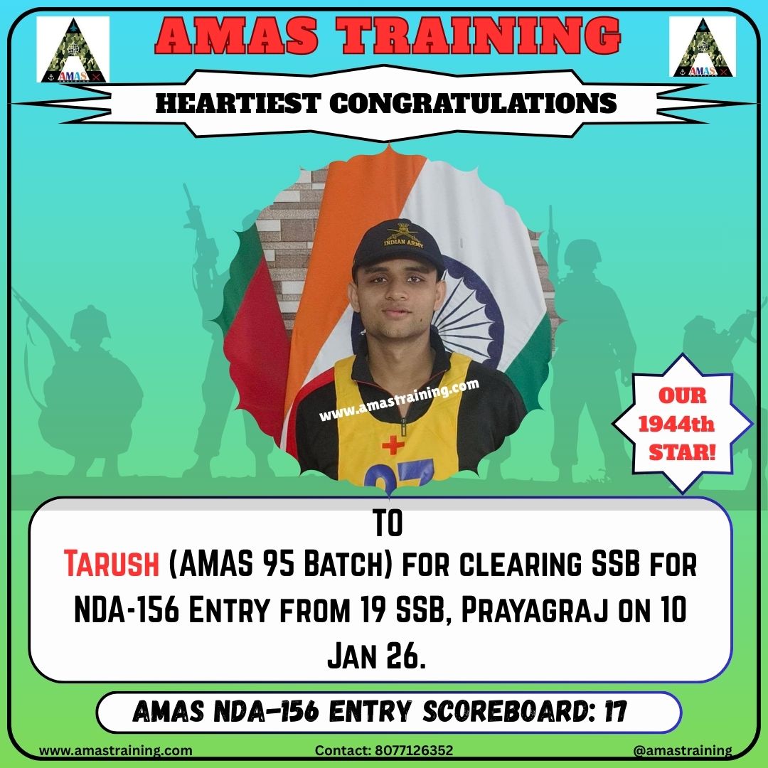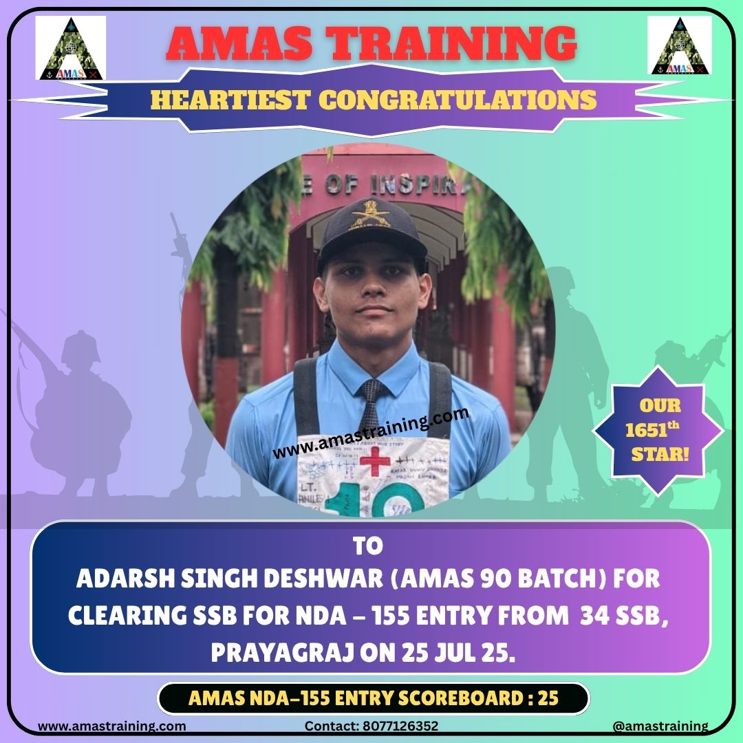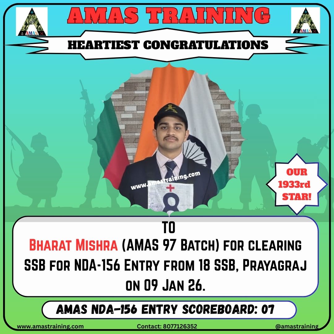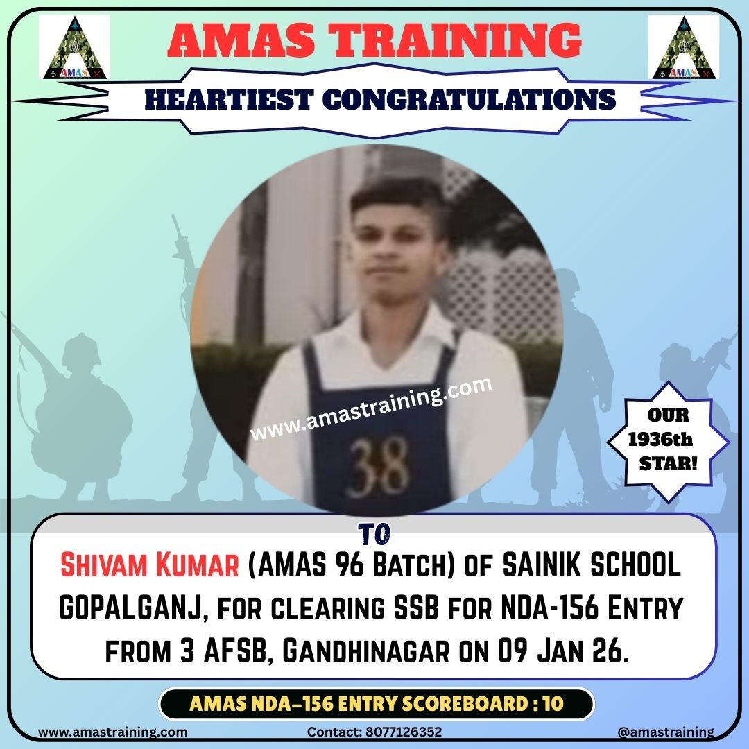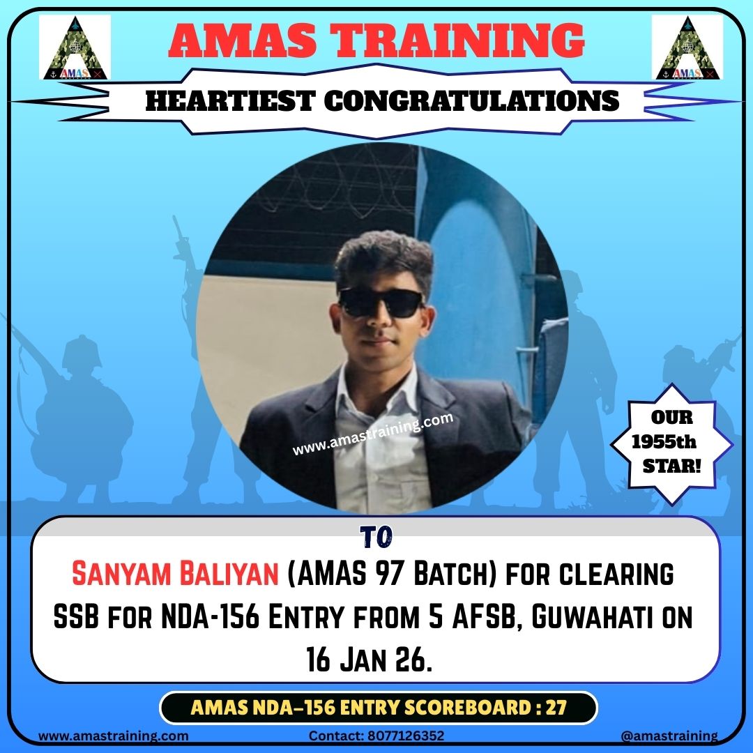 Heartiest Congratulations To: *****SAGAR KUMAR for getting recommended from 21 SSB, BHOPAL on 14 FEB 2026 for CDS(IMA)Entry*****SHIVAM YADAV for getting recommended from 21 SSB, BHOPAL on 14 FEB 2026 for CDS(IMA)Entry*****HIMANSHU for getting recommended from 32 SSB, JALANDHAR on 09 FEB 2026 for TES-55 Entry*****ANKIT KUMAR SINGH for getting recommended from 22 SSB, BHOPAL on 15 FEB 2026 for CDS(IMA)Entry*****APOORVA SAHU for getting recommended from 32 SSB, JALANDHAR on 15 DEC 2025 for SSCW(T) Entry*****SATYAM JHA for getting recommended from 11 SSB, PRAYAGRAJ on 10 JAN 2026 for NDA-156 Entry*****DIVYANSH RANA for getting recommended from 5 AFSB, GUWAHATI on 23 JAN 2026 for NDA-156 Entry*****PRARET SINGH for getting recommended from 17 SSB, BENGALURU on 12 FEB 2026 for CDS(IMA) Entry*****DIP MONDAL for getting recommended from 20 SSB, BHOPAL on 07 FEB 2026 for CDS(IMA) Entry*****ABHIMANYU YADAV for getting recommended from 31 SSB, JALANDHAR on 07 FEB 2026 for CDS(IMA) Entry*****ROHAN for getting recommended from 31 SSB, JALANDHAR on 07 FEB 2026 for CDS(IMA) Entry*****HIMANSHU SHARMA for getting recommended from 1 AFSB, DEHRADUN on 06 FEB 2026 for AFCAT Entry*****ABHISHEK YADAV for getting recommended from 4 AFSB, VARANASI on 07 FEB 2026 for AFCAT Entry*****PREM MAYUR KUMAR of RIMC for getting recommended from NSB, KOLKATA on 10 JAN 2026 for NDA-156 Entry*****KARAN SINGH for getting recommended from 1 AFSB, DEHRADUN on 06 FEB 2026 for AFCAT Entry*****ABHAY THAKUR for getting recommended from 1 AFSB, DEHRADUN on 06 FEB 2026 for AFCAT Entry*****KESHAV SAINI for getting recommended from 1 AFSB, DEHRADUN on 06 FEB 2026 for AFCAT Entry*****ASHUTOSH SHARMA for getting recommended from 22 SSB, BHOPAL on 06 FEB 2026 for CDS(IMA) Entry*****ANURAG SINGH for getting recommended from 20 SSB, BHOPAL on 02 FEB 2026 for CDS(IMA) Entry******PRIYANSHU SINGH for getting recommended from 20 SSB, BHOPAL on 02 FEB 2026 for CDS(IMA) Entry*****RAJAT PORAS for getting recommended from 32 SSB, JALANDHAR on 25 JAN 2026 for NDA-156 Entry*****GURCHETAN SINGH for getting recommended from 4 AFSB, VARANASI on 30 JAN 2026 for NDA-156 Entry*****JIYA GOSWAMI for getting recommended from 22 SSB, BHOPAL on 27 JAN 2026 for NDA-156 Entry*****RIPSI MOHANTY for getting recommended from 24 SSB, BENGALURU on 31 JAN 2026 for NDA-156 Entry*****SHAGUN for getting recommended from 24 SSB, BENGALURU on 31 JAN 2026 for NDA-156 Entry*****ANISHA for getting recommended from 24 SSB, BENGALURU on 31 JAN 2026 for NDA-156 Entry*****NAVEEN KUMAR of SAINIK SCHOOL GOPALGANJ for getting recommended from 21 SSB, BHOPAL on 26 JAN 2026 for NDA-156 Entry*****SAHIL CHIKARA for getting recommended from NSB, VIZAG on 30 JAN 2026 for NAVY (GSX) Entry*****MANISH KUMAR for getting recommended from 32 SSB, JALANDHAR on 30 JAN 2026 for CDS(IMA) Entry*****ABHAY SHARMA for getting recommended from 32 SSB, JALANDHAR on 30 JAN 2026 for CDS(IMA) Entry*****ABHAY SINGH for getting recommended from 18 SSB, PRAYAGRAJ on 29 JAN 2026 for CDS(IMA) Entry*****RITESH PUNDIR for getting recommended from 33 SSB, BHOPAL on 29 JAN 2026 for CDS(INA) Entry*****PRINCE CHAUDHARY for getting recommended from 14 SSB, PRAYAGRAJ on 28 JAN 2026 for CDS(IMA) Entry*****JAYESH PARATE for getting recommended from NSB, VIZAG on 25 JAN 2026 for CDS(INA) Entry*****PRIY RANJAN for getting recommended from 32 SSB, JALANDHAR on 25 JAN 2026 for NDA-156 Entry*****ABHINAV SINGH for getting recommended from 4 AFSB, VARANASI on 23 JAN 2026 for NDA-156 Entry*****EKNOOR SINGH for getting recommended from 4 AFSB, VARANASI on 23 JAN 2026 for NDA-156 Entry*****SIDHARTH MANHOTRA for getting recommended from 4 AFSB, VARANASI on 23 JAN 2026 for NDA-156 Entry*****Cdt AADI RANE for getting recommended from 4 AFSB, VARANASI on 23 JAN 2026 for NDA-156 Entry*****ARYAN SINGH for getting recommended from NSB, KOLKATA on 24 JAN 2026 for Navy Tech Entry*****RAVISH KHAN for getting recommended from 21 SSB, BHOPAL on 24 JAN 2026 for NDA-156 Entry*****MUNNA GUPTA of SAINIK SCHOOL GOPALGANJ for getting recommended from 33 SSB, BHOPAL on 19 JAN 2026 for NDA-156 Entry*****ARMAANDEEP SINGH of NSPI for getting recommended from 21 SSB, BHOPAL on 19 JAN 2026 for NDA-156 Entry*****AKSHAT CHRIS BERG for getting recommended from 18 SSB, PRAYAGRAJ on 19 JAN 2026 for NDA-156 Entry*****PUSHMINDER SINGH for getting recommended from 18 SSB, PRAYAGRAJ on 19 JAN 2026 for NDA-156 Entry*****MAYANK CHAUDHARI for getting recommended from 3 AFSB, GANDHINAGAR on 16 JAN 2025 for NDA-156 Entry*****HARKIRAT SINGH for getting recommended from 22 SSB, BHOPAL on 17 JAN 2025 for NDA-156 Entry*****NAWABPREET SINGH for getting recommended from 1 AFSB, DEHRADUN on 16 JAN 2025 for NDA-156 Entry*****SANYAM BALIYAN for getting recommended from 5 AFSB, GUWAHATI on 16 JAN 2025 for NDA-156 Entry*****AYUSHMAN SINGH for getting recommended from 34 SSB, PRAYAGRAJ on 16 JAN 2025 for NDA-156 Entry*****ABHAY PRATAP SINGH for getting recommended from 32 SSB, JALANDHAR on 15 JAN 2025 for NDA-156 Entry*****GURTEJ SINGH DUTTA for getting recommended from 19 SSB, PRAYAGRAJ on 15 JAN 2025 for NDA-156 Entry*****SAKSHI SRIVASTAVA for getting recommended from 11 SSB, PRAYAGRAJ on 7 JAN 2025 for JAG Entry*****KARISHMA DODAIN for getting recommended from 20 SSB, BHOPAL on 6 JAN 2025 for JAG Entry*****TILAK PAREEK for getting recommended from 32 SSB, JALANDHAR on 5 JAN 2025 for NCC Entry*****JAYA MISHRA for getting recommended from 33 SSB, BHOPAL on 4 JAN 2025 for SSC(NAIC) Entry*****SHRIKANT SINGH for getting recommended from 31 SSB, JALANDHAR on 2 JAN 2025 for NCC Entry*****ELIZABETH MOHAN for getting recommended from 20 SSB, BHOPAL on 3 JAN 2025 for NCC Entry*****KULDEEP CHOUDHARY for getting recommended from 3 AFSB, GANDHINAGAR on 2 JAN 2025 for NDA-156 Entry*****AYUSH SAINI for getting recommended from 2 AFSB, MYSORE on 2 JAN 2025 for NDA-156 Entry*****PRINCE CHAUDHARY for getting recommended from 22 SSB, BHOPAL on 1 JAN 2025 for NCC Entry*****KESHAV NARAYAN AWASTHI fo