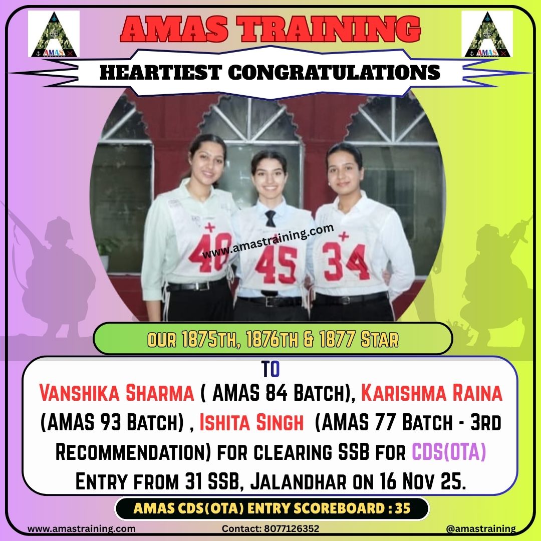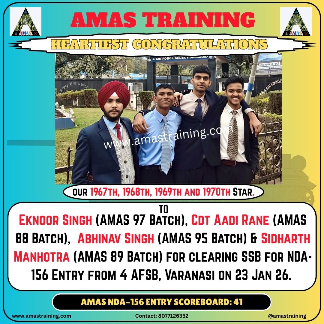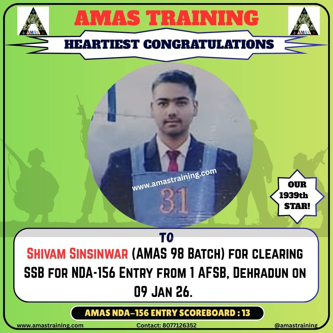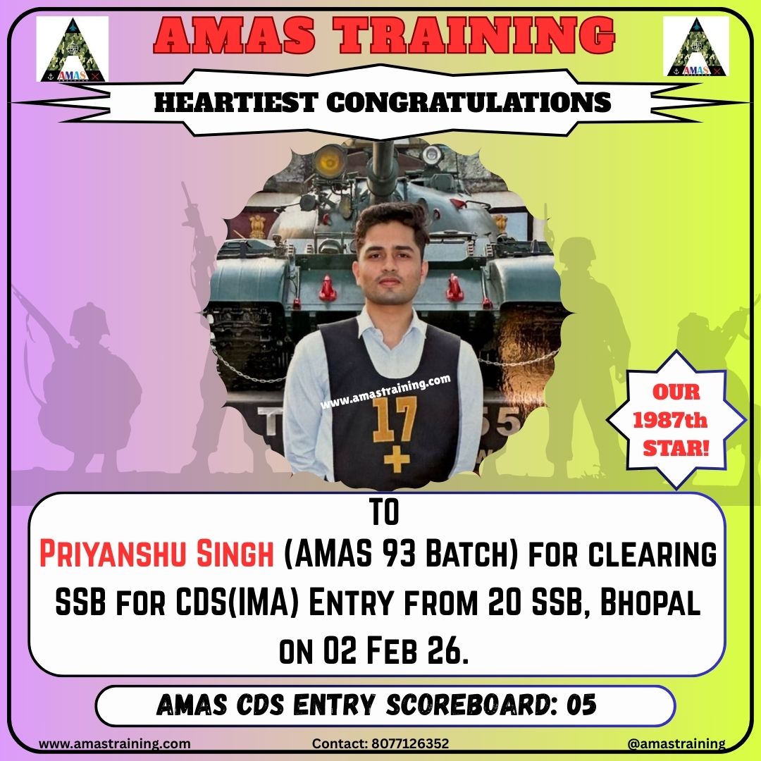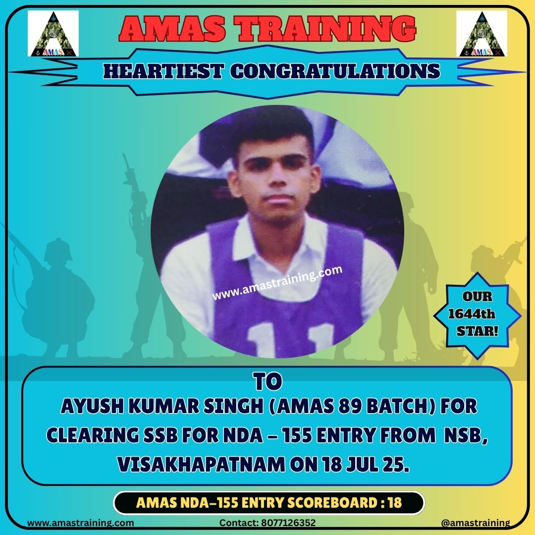 Heartiest Congratulations To: *****SAGAR KUMAR for getting recommended from 21 SSB, BHOPAL on 14 FEB 2026 for CDS(IMA)Entry*****SHIVAM YADAV for getting recommended from 21 SSB, BHOPAL on 14 FEB 2026 for CDS(IMA)Entry*****HIMANSHU for getting recommended from 32 SSB, JALANDHAR on 09 FEB 2026 for TES-55 Entry*****ANKIT KUMAR SINGH for getting recommended from 22 SSB, BHOPAL on 15 FEB 2026 for CDS(IMA)Entry*****APOORVA SAHU for getting recommended from 32 SSB, JALANDHAR on 15 DEC 2025 for SSCW(T) Entry*****SATYAM JHA for getting recommended from 11 SSB, PRAYAGRAJ on 10 JAN 2026 for NDA-156 Entry*****DIVYANSH RANA for getting recommended from 5 AFSB, GUWAHATI on 23 JAN 2026 for NDA-156 Entry*****PRARET SINGH for getting recommended from 17 SSB, BENGALURU on 12 FEB 2026 for CDS(IMA) Entry*****DIP MONDAL for getting recommended from 20 SSB, BHOPAL on 07 FEB 2026 for CDS(IMA) Entry*****ABHIMANYU YADAV for getting recommended from 31 SSB, JALANDHAR on 07 FEB 2026 for CDS(IMA) Entry*****ROHAN for getting recommended from 31 SSB, JALANDHAR on 07 FEB 2026 for CDS(IMA) Entry*****HIMANSHU SHARMA for getting recommended from 1 AFSB, DEHRADUN on 06 FEB 2026 for AFCAT Entry*****ABHISHEK YADAV for getting recommended from 4 AFSB, VARANASI on 07 FEB 2026 for AFCAT Entry*****PREM MAYUR KUMAR of RIMC for getting recommended from NSB, KOLKATA on 10 JAN 2026 for NDA-156 Entry*****KARAN SINGH for getting recommended from 1 AFSB, DEHRADUN on 06 FEB 2026 for AFCAT Entry*****ABHAY THAKUR for getting recommended from 1 AFSB, DEHRADUN on 06 FEB 2026 for AFCAT Entry*****KESHAV SAINI for getting recommended from 1 AFSB, DEHRADUN on 06 FEB 2026 for AFCAT Entry*****ASHUTOSH SHARMA for getting recommended from 22 SSB, BHOPAL on 06 FEB 2026 for CDS(IMA) Entry*****ANURAG SINGH for getting recommended from 20 SSB, BHOPAL on 02 FEB 2026 for CDS(IMA) Entry******PRIYANSHU SINGH for getting recommended from 20 SSB, BHOPAL on 02 FEB 2026 for CDS(IMA) Entry*****RAJAT PORAS for getting recommended from 32 SSB, JALANDHAR on 25 JAN 2026 for NDA-156 Entry*****GURCHETAN SINGH for getting recommended from 4 AFSB, VARANASI on 30 JAN 2026 for NDA-156 Entry*****JIYA GOSWAMI for getting recommended from 22 SSB, BHOPAL on 27 JAN 2026 for NDA-156 Entry*****RIPSI MOHANTY for getting recommended from 24 SSB, BENGALURU on 31 JAN 2026 for NDA-156 Entry*****SHAGUN for getting recommended from 24 SSB, BENGALURU on 31 JAN 2026 for NDA-156 Entry*****ANISHA for getting recommended from 24 SSB, BENGALURU on 31 JAN 2026 for NDA-156 Entry*****NAVEEN KUMAR of SAINIK SCHOOL GOPALGANJ for getting recommended from 21 SSB, BHOPAL on 26 JAN 2026 for NDA-156 Entry*****SAHIL CHIKARA for getting recommended from NSB, VIZAG on 30 JAN 2026 for NAVY (GSX) Entry*****MANISH KUMAR for getting recommended from 32 SSB, JALANDHAR on 30 JAN 2026 for CDS(IMA) Entry*****ABHAY SHARMA for getting recommended from 32 SSB, JALANDHAR on 30 JAN 2026 for CDS(IMA) Entry*****ABHAY SINGH for getting recommended from 18 SSB, PRAYAGRAJ on 29 JAN 2026 for CDS(IMA) Entry*****RITESH PUNDIR for getting recommended from 33 SSB, BHOPAL on 29 JAN 2026 for CDS(INA) Entry*****PRINCE CHAUDHARY for getting recommended from 14 SSB, PRAYAGRAJ on 28 JAN 2026 for CDS(IMA) Entry*****JAYESH PARATE for getting recommended from NSB, VIZAG on 25 JAN 2026 for CDS(INA) Entry*****PRIY RANJAN for getting recommended from 32 SSB, JALANDHAR on 25 JAN 2026 for NDA-156 Entry*****ABHINAV SINGH for getting recommended from 4 AFSB, VARANASI on 23 JAN 2026 for NDA-156 Entry*****EKNOOR SINGH for getting recommended from 4 AFSB, VARANASI on 23 JAN 2026 for NDA-156 Entry*****SIDHARTH MANHOTRA for getting recommended from 4 AFSB, VARANASI on 23 JAN 2026 for NDA-156 Entry*****Cdt AADI RANE for getting recommended from 4 AFSB, VARANASI on 23 JAN 2026 for NDA-156 Entry*****ARYAN SINGH for getting recommended from NSB, KOLKATA on 24 JAN 2026 for Navy Tech Entry*****RAVISH KHAN for getting recommended from 21 SSB, BHOPAL on 24 JAN 2026 for NDA-156 Entry*****MUNNA GUPTA of SAINIK SCHOOL GOPALGANJ for getting recommended from 33 SSB, BHOPAL on 19 JAN 2026 for NDA-156 Entry*****ARMAANDEEP SINGH of NSPI for getting recommended from 21 SSB, BHOPAL on 19 JAN 2026 for NDA-156 Entry*****AKSHAT CHRIS BERG for getting recommended from 18 SSB, PRAYAGRAJ on 19 JAN 2026 for NDA-156 Entry*****PUSHMINDER SINGH for getting recommended from 18 SSB, PRAYAGRAJ on 19 JAN 2026 for NDA-156 Entry*****MAYANK CHAUDHARI for getting recommended from 3 AFSB, GANDHINAGAR on 16 JAN 2025 for NDA-156 Entry*****HARKIRAT SINGH for getting recommended from 22 SSB, BHOPAL on 17 JAN 2025 for NDA-156 Entry*****NAWABPREET SINGH for getting recommended from 1 AFSB, DEHRADUN on 16 JAN 2025 for NDA-156 Entry*****SANYAM BALIYAN for getting recommended from 5 AFSB, GUWAHATI on 16 JAN 2025 for NDA-156 Entry*****AYUSHMAN SINGH for getting recommended from 34 SSB, PRAYAGRAJ on 16 JAN 2025 for NDA-156 Entry*****ABHAY PRATAP SINGH for getting recommended from 32 SSB, JALANDHAR on 15 JAN 2025 for NDA-156 Entry*****GURTEJ SINGH DUTTA for getting recommended from 19 SSB, PRAYAGRAJ on 15 JAN 2025 for NDA-156 Entry*****SAKSHI SRIVASTAVA for getting recommended from 11 SSB, PRAYAGRAJ on 7 JAN 2025 for JAG Entry*****KARISHMA DODAIN for getting recommended from 20 SSB, BHOPAL on 6 JAN 2025 for JAG Entry*****TILAK PAREEK for getting recommended from 32 SSB, JALANDHAR on 5 JAN 2025 for NCC Entry*****JAYA MISHRA for getting recommended from 33 SSB, BHOPAL on 4 JAN 2025 for SSC(NAIC) Entry*****SHRIKANT SINGH for getting recommended from 31 SSB, JALANDHAR on 2 JAN 2025 for NCC Entry*****ELIZABETH MOHAN for getting recommended from 20 SSB, BHOPAL on 3 JAN 2025 for NCC Entry*****KULDEEP CHOUDHARY for getting recommended from 3 AFSB, GANDHINAGAR on 2 JAN 2025 for NDA-156 Entry*****AYUSH SAINI for getting recommended from 2 AFSB, MYSORE on 2 JAN 2025 for NDA-156 Entry*****PRINCE CHAUDHARY for getting recommended from 22 SSB, BHOPAL on 1 JAN 2025 for NCC Entry*****KESHAV NARAYAN AWASTHI fo