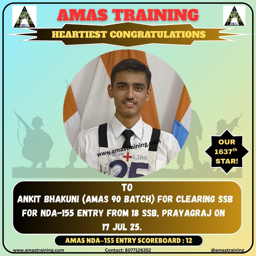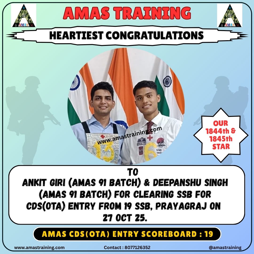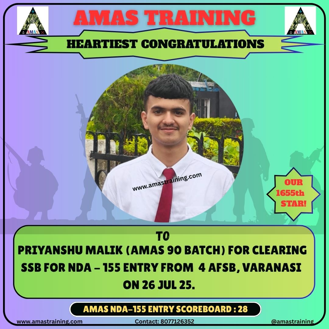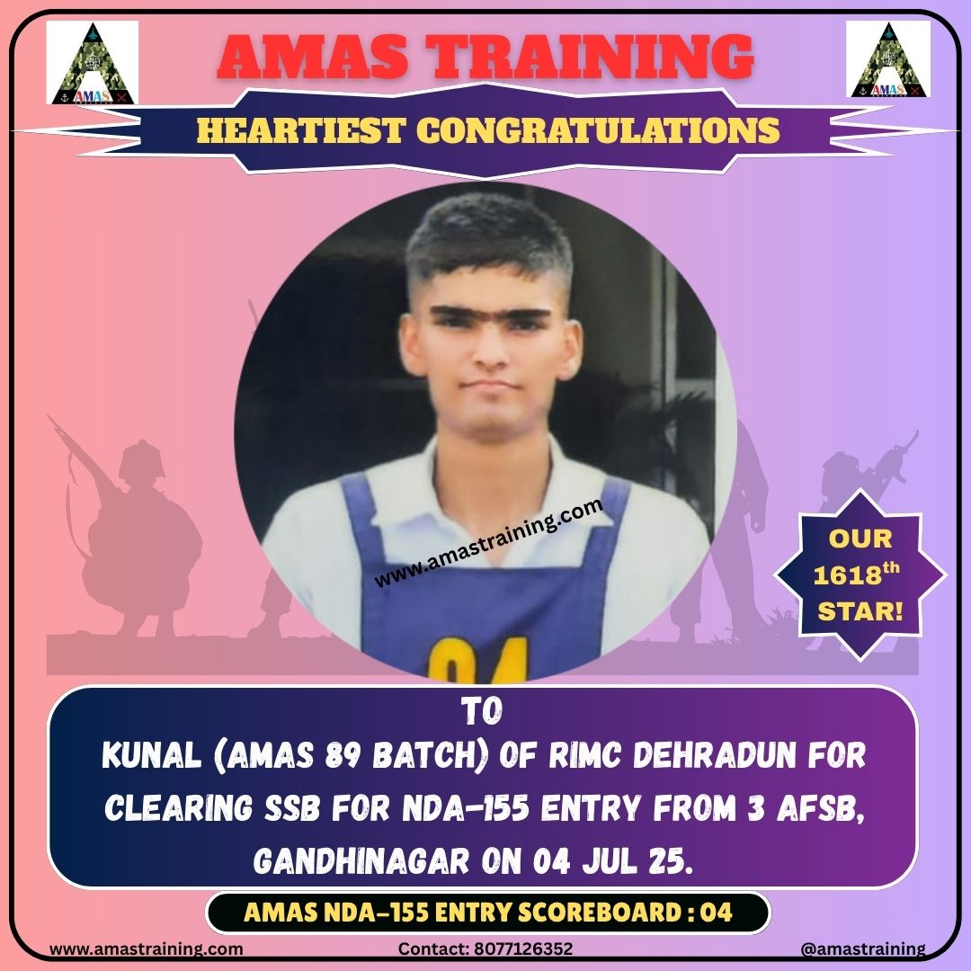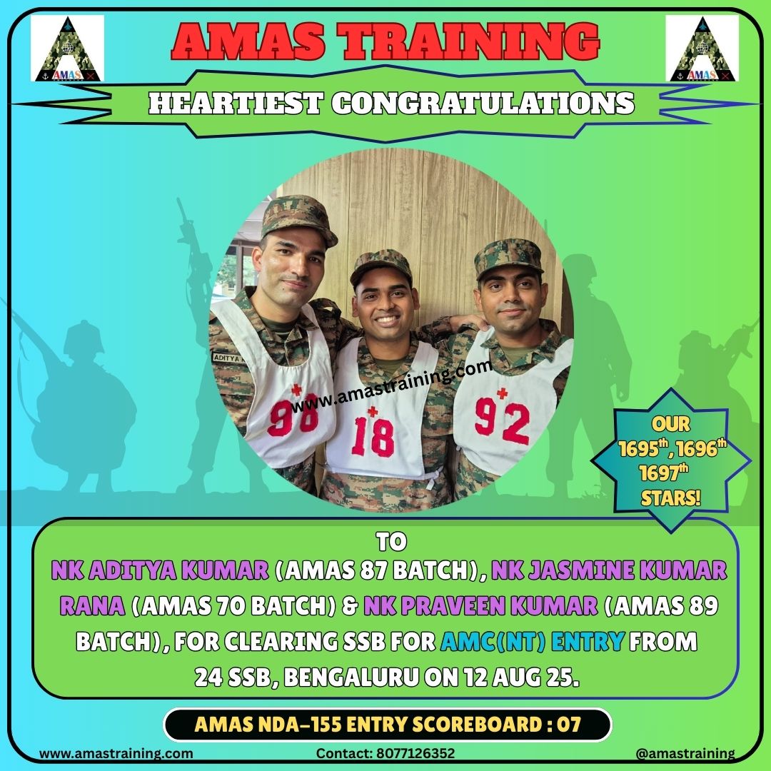Heartiest Congratulations To: *****SAGAR KUMAR for getting recommended from 21 SSB, BHOPAL on 14 FEB 2026 for CDS(IMA)Entry*****SHIVAM YADAV for getting recommended from 21 SSB, BHOPAL on 14 FEB 2026 for CDS(IMA)Entry*****HIMANSHU for getting recommended from 32 SSB, JALANDHAR on 09 FEB 2026 for TES-55 Entry*****ANKIT KUMAR SINGH for getting recommended from 22 SSB, BHOPAL on 15 FEB 2026 for CDS(IMA)Entry*****APOORVA SAHU for getting recommended from 32 SSB, JALANDHAR on 15 DEC 2025 for SSCW(T) Entry*****SATYAM JHA for getting recommended from 11 SSB, PRAYAGRAJ on 10 JAN 2026 for NDA-156 Entry*****DIVYANSH RANA for getting recommended from 5 AFSB, GUWAHATI on 23 JAN 2026 for NDA-156 Entry*****PRARET SINGH for getting recommended from 17 SSB, BENGALURU on 12 FEB 2026 for CDS(IMA) Entry*****DIP MONDAL for getting recommended from 20 SSB, BHOPAL on 07 FEB 2026 for CDS(IMA) Entry*****ABHIMANYU YADAV for getting recommended from 31 SSB, JALANDHAR on 07 FEB 2026 for CDS(IMA) Entry*****ROHAN for getting recommended from 31 SSB, JALANDHAR on 07 FEB 2026 for CDS(IMA) Entry*****HIMANSHU SHARMA for getting recommended from 1 AFSB, DEHRADUN on 06 FEB 2026 for AFCAT Entry*****ABHISHEK YADAV for getting recommended from 4 AFSB, VARANASI on 07 FEB 2026 for AFCAT Entry*****PREM MAYUR KUMAR of RIMC for getting recommended from NSB, KOLKATA on 10 JAN 2026 for NDA-156 Entry*****KARAN SINGH for getting recommended from 1 AFSB, DEHRADUN on 06 FEB 2026 for AFCAT Entry*****ABHAY THAKUR for getting recommended from 1 AFSB, DEHRADUN on 06 FEB 2026 for AFCAT Entry*****KESHAV SAINI for getting recommended from 1 AFSB, DEHRADUN on 06 FEB 2026 for AFCAT Entry*****ASHUTOSH SHARMA for getting recommended from 22 SSB, BHOPAL on 06 FEB 2026 for CDS(IMA) Entry*****ANURAG SINGH for getting recommended from 20 SSB, BHOPAL on 02 FEB 2026 for CDS(IMA) Entry******PRIYANSHU SINGH for getting recommended from 20 SSB, BHOPAL on 02 FEB 2026 for CDS(IMA) Entry*****RAJAT PORAS for getting recommended from 32 SSB, JALANDHAR on 25 JAN 2026 for NDA-156 Entry*****GURCHETAN SINGH for getting recommended from 4 AFSB, VARANASI on 30 JAN 2026 for NDA-156 Entry*****JIYA GOSWAMI for getting recommended from 22 SSB, BHOPAL on 27 JAN 2026 for NDA-156 Entry*****RIPSI MOHANTY for getting recommended from 24 SSB, BENGALURU on 31 JAN 2026 for NDA-156 Entry*****SHAGUN for getting recommended from 24 SSB, BENGALURU on 31 JAN 2026 for NDA-156 Entry*****ANISHA for getting recommended from 24 SSB, BENGALURU on 31 JAN 2026 for NDA-156 Entry*****NAVEEN KUMAR of SAINIK SCHOOL GOPALGANJ for getting recommended from 21 SSB, BHOPAL on 26 JAN 2026 for NDA-156 Entry*****SAHIL CHIKARA for getting recommended from NSB, VIZAG on 30 JAN 2026 for NAVY (GSX) Entry*****MANISH KUMAR for getting recommended from 32 SSB, JALANDHAR on 30 JAN 2026 for CDS(IMA) Entry*****ABHAY SHARMA for getting recommended from 32 SSB, JALANDHAR on 30 JAN 2026 for CDS(IMA) Entry*****ABHAY SINGH for getting recommended from 18 SSB, PRAYAGRAJ on 29 JAN 2026 for CDS(IMA) Entry*****RITESH PUNDIR for getting recommended from 33 SSB, BHOPAL on 29 JAN 2026 for CDS(INA) Entry*****PRINCE CHAUDHARY for getting recommended from 14 SSB, PRAYAGRAJ on 28 JAN 2026 for CDS(IMA) Entry*****JAYESH PARATE for getting recommended from NSB, VIZAG on 25 JAN 2026 for CDS(INA) Entry*****PRIY RANJAN for getting recommended from 32 SSB, JALANDHAR on 25 JAN 2026 for NDA-156 Entry*****ABHINAV SINGH for getting recommended from 4 AFSB, VARANASI on 23 JAN 2026 for NDA-156 Entry*****EKNOOR SINGH for getting recommended from 4 AFSB, VARANASI on 23 JAN 2026 for NDA-156 Entry*****SIDHARTH MANHOTRA for getting recommended from 4 AFSB, VARANASI on 23 JAN 2026 for NDA-156 Entry*****Cdt AADI RANE for getting recommended from 4 AFSB, VARANASI on 23 JAN 2026 for NDA-156 Entry*****ARYAN SINGH for getting recommended from NSB, KOLKATA on 24 JAN 2026 for Navy Tech Entry*****RAVISH KHAN for getting recommended from 21 SSB, BHOPAL on 24 JAN 2026 for NDA-156 Entry*****MUNNA GUPTA of SAINIK SCHOOL GOPALGANJ for getting recommended from 33 SSB, BHOPAL on 19 JAN 2026 for NDA-156 Entry*****ARMAANDEEP SINGH of NSPI for getting recommended from 21 SSB, BHOPAL on 19 JAN 2026 for NDA-156 Entry*****AKSHAT CHRIS BERG for getting recommended from 18 SSB, PRAYAGRAJ on 19 JAN 2026 for NDA-156 Entry*****PUSHMINDER SINGH for getting recommended from 18 SSB, PRAYAGRAJ on 19 JAN 2026 for NDA-156 Entry*****MAYANK CHAUDHARI for getting recommended from 3 AFSB, GANDHINAGAR on 16 JAN 2025 for NDA-156 Entry*****HARKIRAT SINGH for getting recommended from 22 SSB, BHOPAL on 17 JAN 2025 for NDA-156 Entry*****NAWABPREET SINGH for getting recommended from 1 AFSB, DEHRADUN on 16 JAN 2025 for NDA-156 Entry*****SANYAM BALIYAN for getting recommended from 5 AFSB, GUWAHATI on 16 JAN 2025 for NDA-156 Entry*****AYUSHMAN SINGH for getting recommended from 34 SSB, PRAYAGRAJ on 16 JAN 2025 for NDA-156 Entry*****ABHAY PRATAP SINGH for getting recommended from 32 SSB, JALANDHAR on 15 JAN 2025 for NDA-156 Entry*****GURTEJ SINGH DUTTA for getting recommended from 19 SSB, PRAYAGRAJ on 15 JAN 2025 for NDA-156 Entry*****SAKSHI SRIVASTAVA for getting recommended from 11 SSB, PRAYAGRAJ on 7 JAN 2025 for JAG Entry*****KARISHMA DODAIN for getting recommended from 20 SSB, BHOPAL on 6 JAN 2025 for JAG Entry*****TILAK PAREEK for getting recommended from 32 SSB, JALANDHAR on 5 JAN 2025 for NCC Entry*****JAYA MISHRA for getting recommended from 33 SSB, BHOPAL on 4 JAN 2025 for SSC(NAIC) Entry*****SHRIKANT SINGH for getting recommended from 31 SSB, JALANDHAR on 2 JAN 2025 for NCC Entry*****ELIZABETH MOHAN for getting recommended from 20 SSB, BHOPAL on 3 JAN 2025 for NCC Entry*****KULDEEP CHOUDHARY for getting recommended from 3 AFSB, GANDHINAGAR on 2 JAN 2025 for NDA-156 Entry*****AYUSH SAINI for getting recommended from 2 AFSB, MYSORE on 2 JAN 2025 for NDA-156 Entry*****PRINCE CHAUDHARY for getting recommended from 22 SSB, BHOPAL on 1 JAN 2025 for NCC Entry*****KESHAV NARAYAN AWASTHI fo