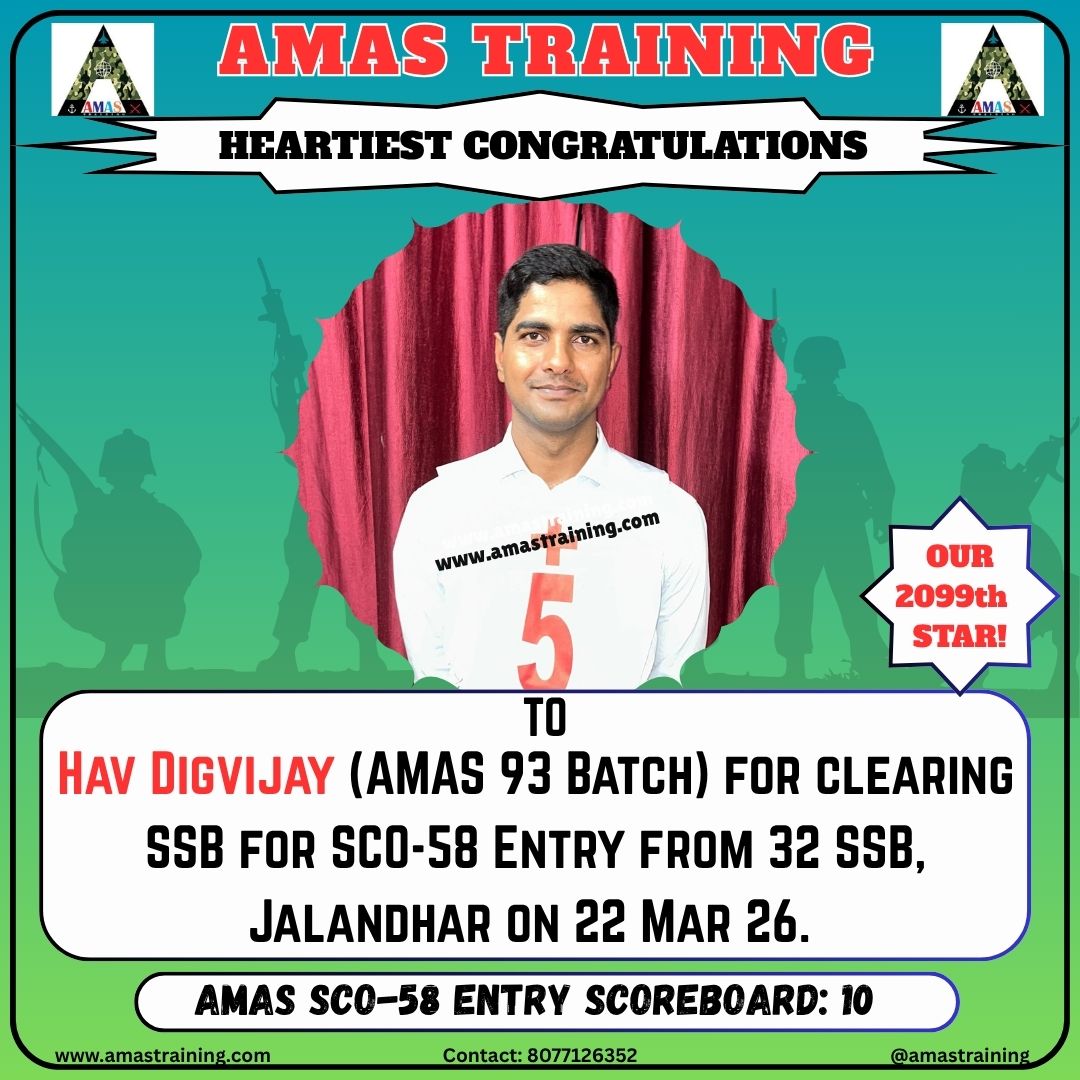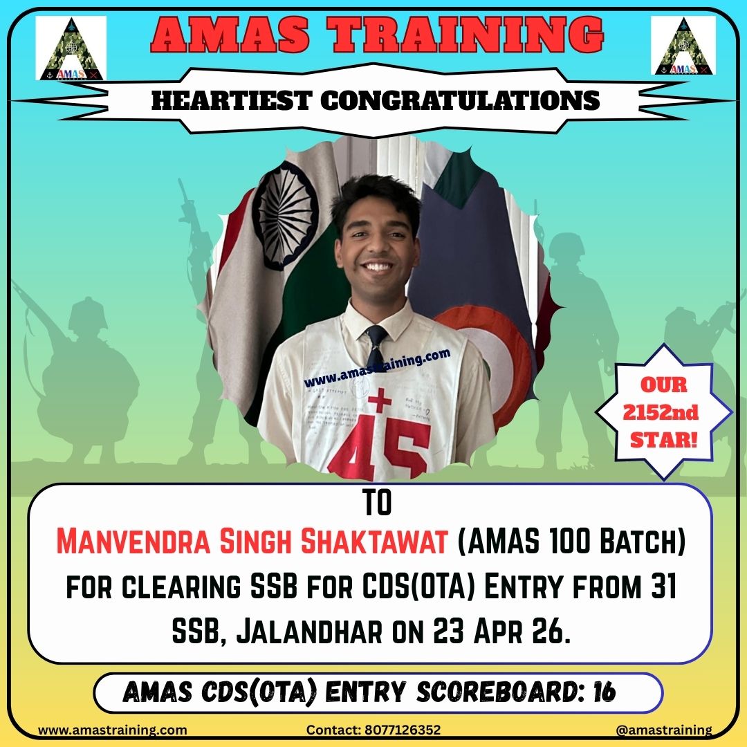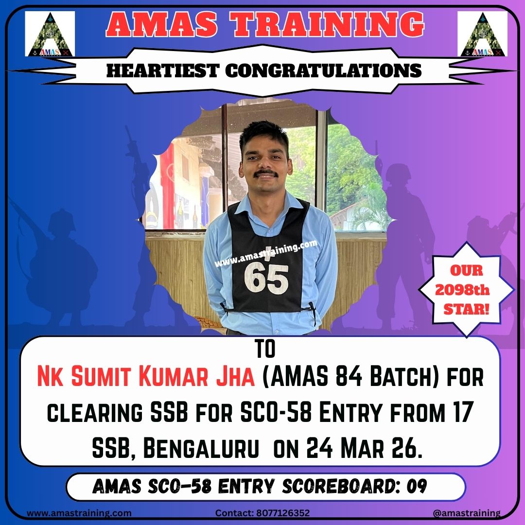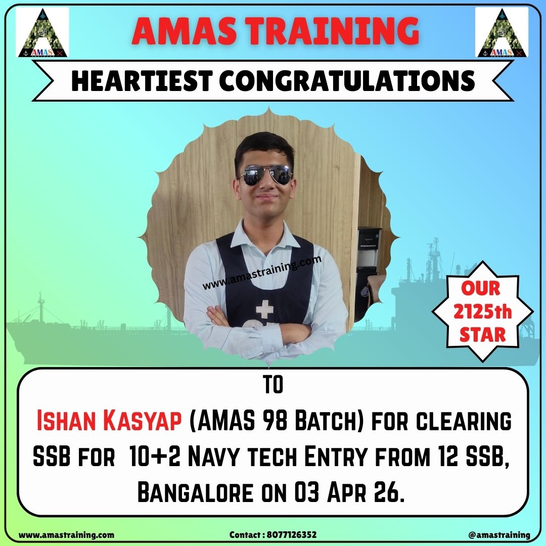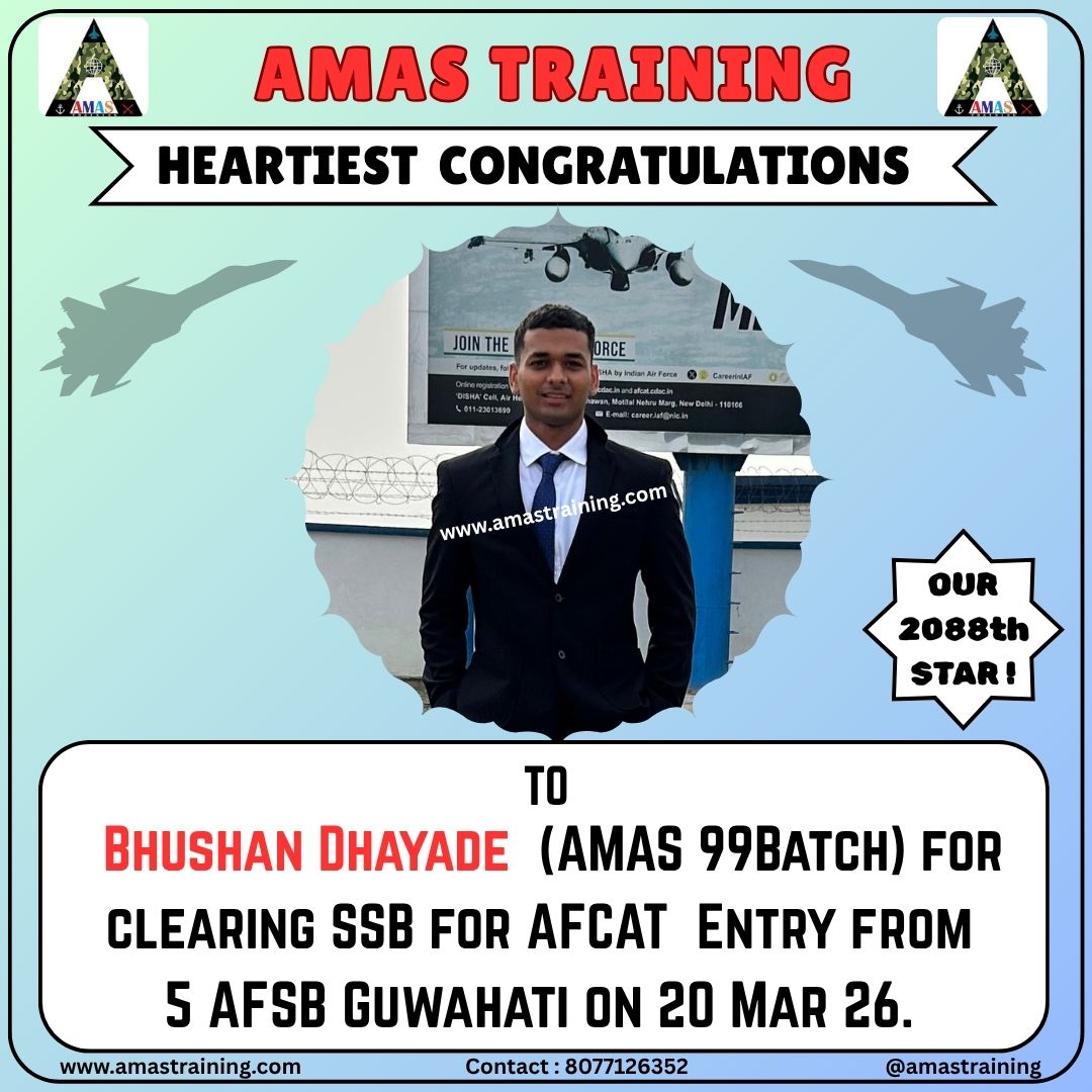 “Its really PROUD to be a part of such great ACADEMY...!! The classes are superb with all the required facilities and so COOPERATING faculty. You can even share any kind of problem with the main AUTHORITIES. All over the academv team in very INSPIRING and full of ENTHUSIASM..The most admiring part is that the tutors focus on CONCEPTUAL development..!! So I recommend students aspiring for SSB to join ”AMAS TRAINING, THE GURUKUL OF SSB" for enhancing your knowledge and to get best RESULTS..!!