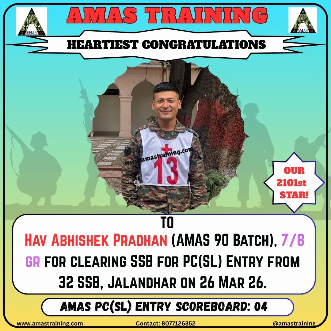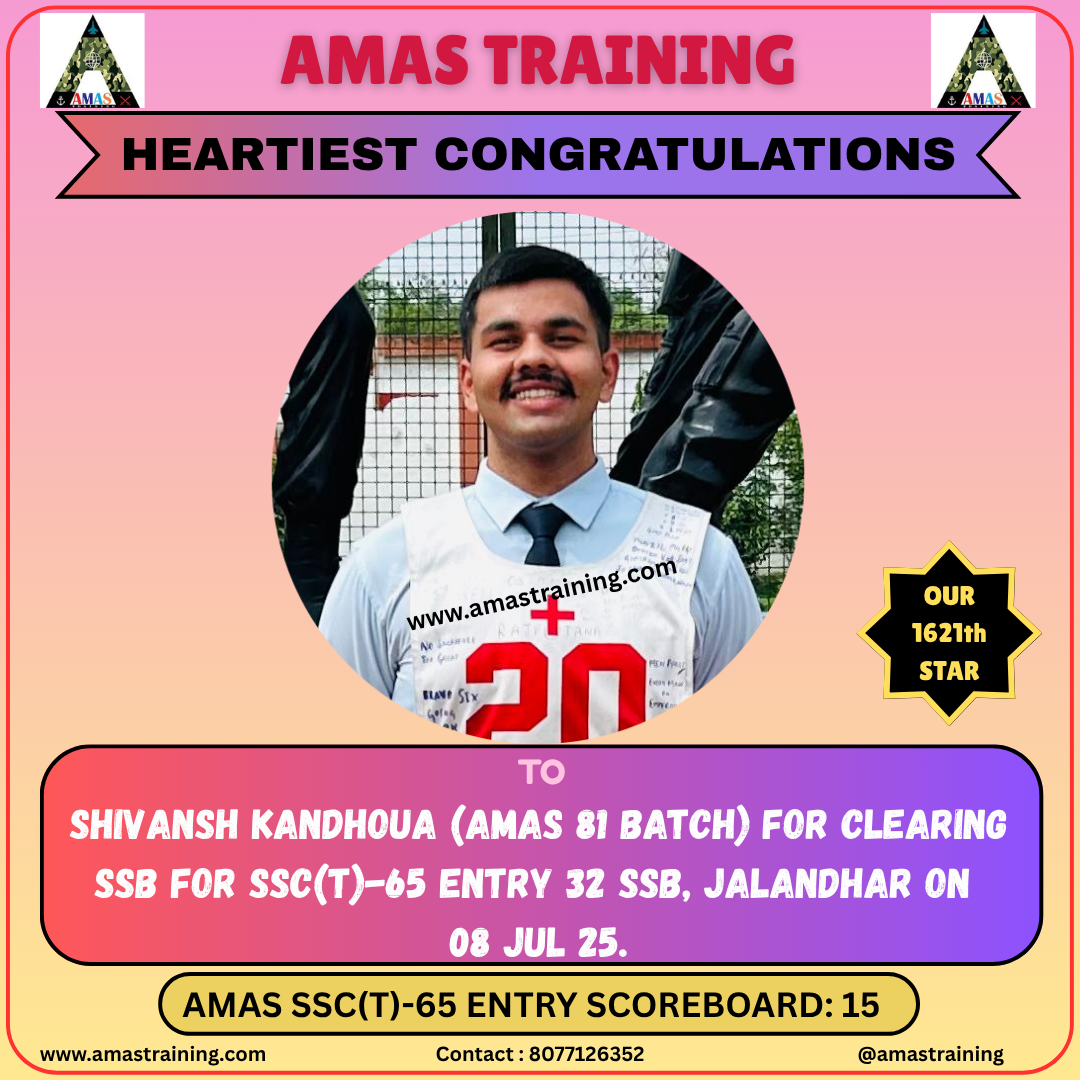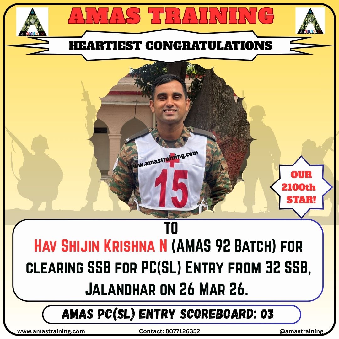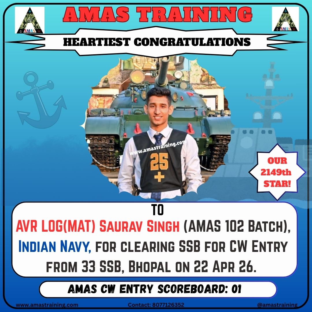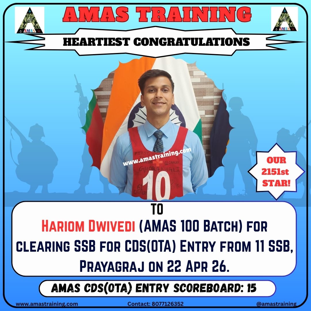 “Its really PROUD to be a part of such great ACADEMY...!! The classes are superb with all the required facilities and so COOPERATING faculty. You can even share any kind of problem with the main AUTHORITIES. All over the academv team in very INSPIRING and full of ENTHUSIASM..The most admiring part is that the tutors focus on CONCEPTUAL development..!! So I recommend students aspiring for SSB to join ”AMAS TRAINING, THE GURUKUL OF SSB" for enhancing your knowledge and to get best RESULTS..!!
