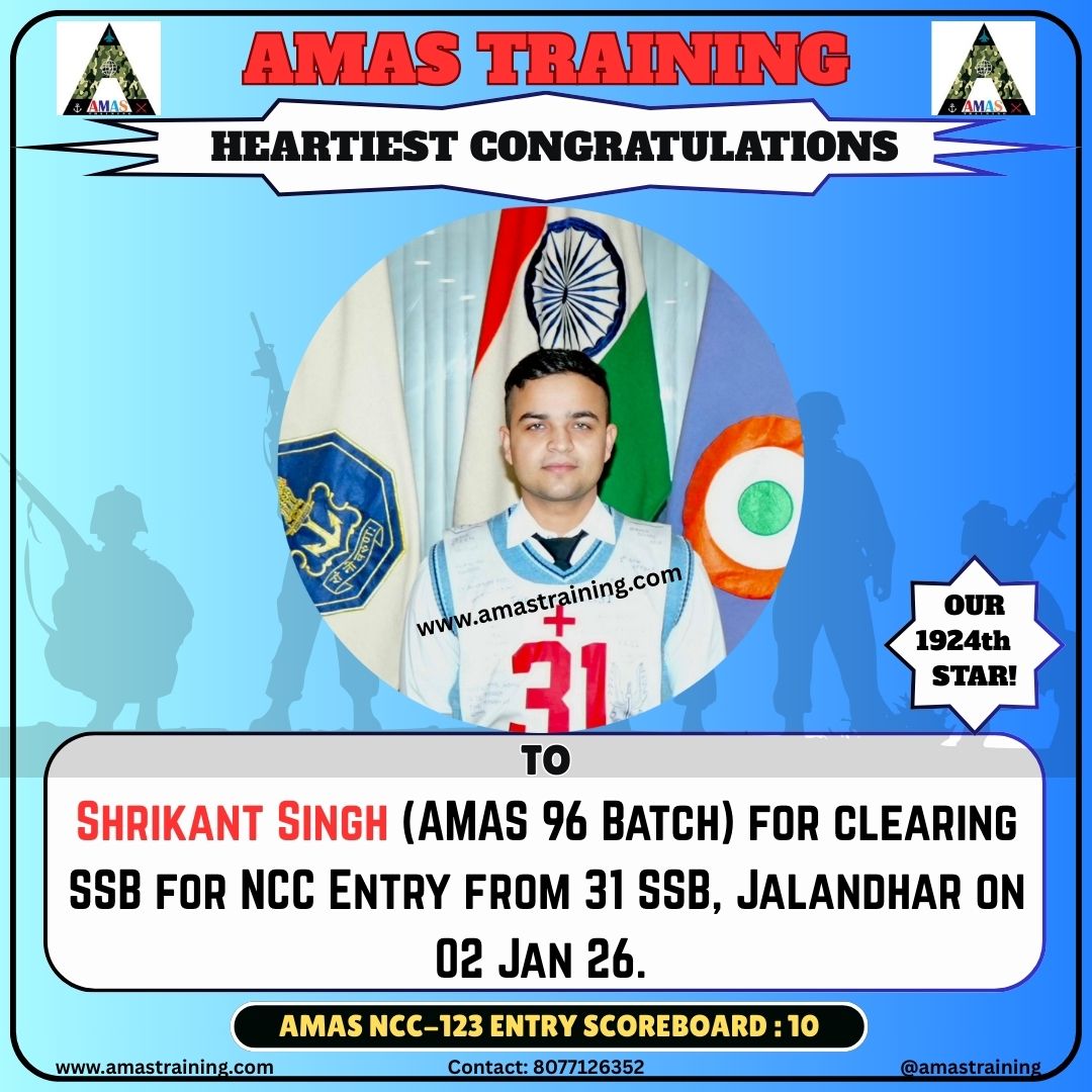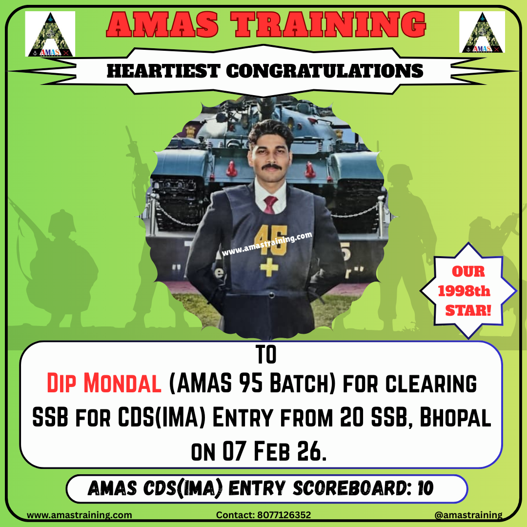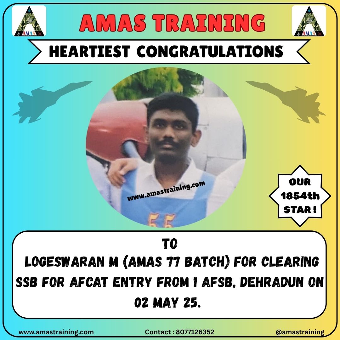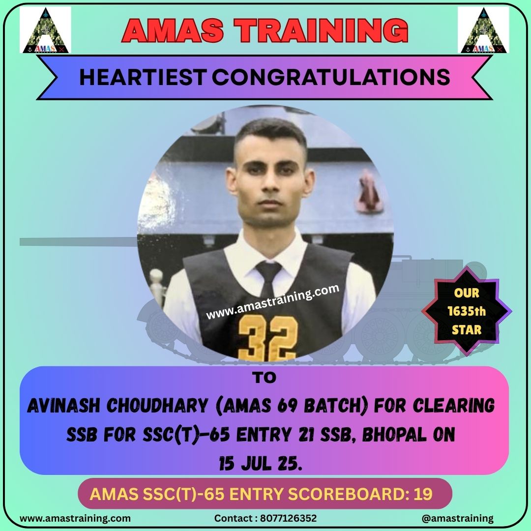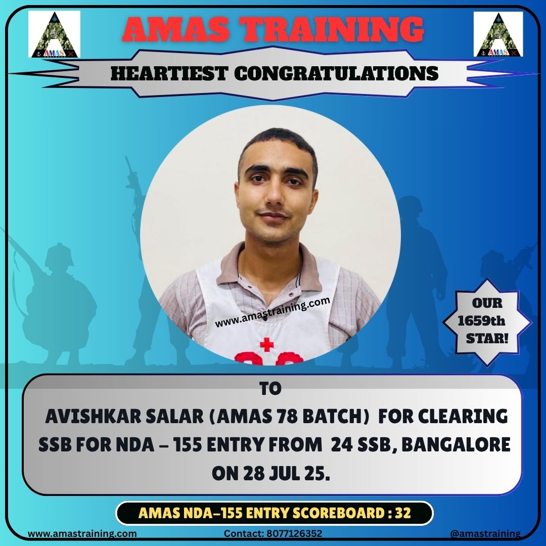 “Its really PROUD to be a part of such great ACADEMY...!! The classes are superb with all the required facilities and so COOPERATING faculty. You can even share any kind of problem with the main AUTHORITIES. All over the academv team in very INSPIRING and full of ENTHUSIASM..The most admiring part is that the tutors focus on CONCEPTUAL development..!! So I recommend students aspiring for SSB to join ”AMAS TRAINING, THE GURUKUL OF SSB" for enhancing your knowledge and to get best RESULTS..!!