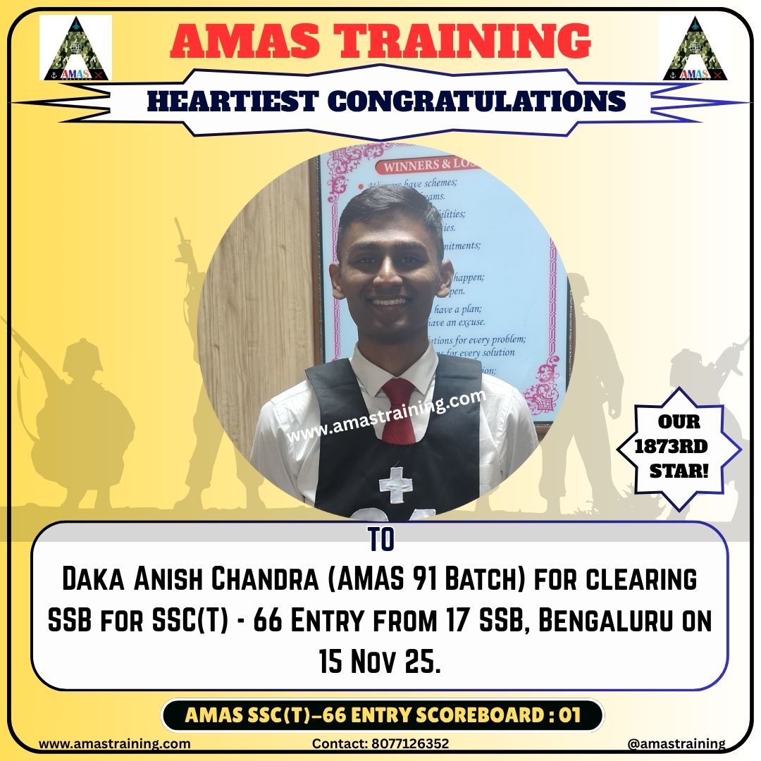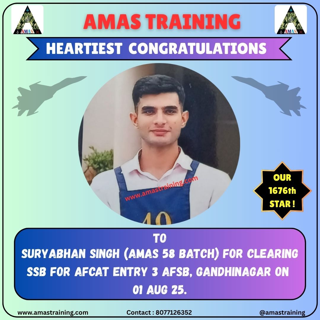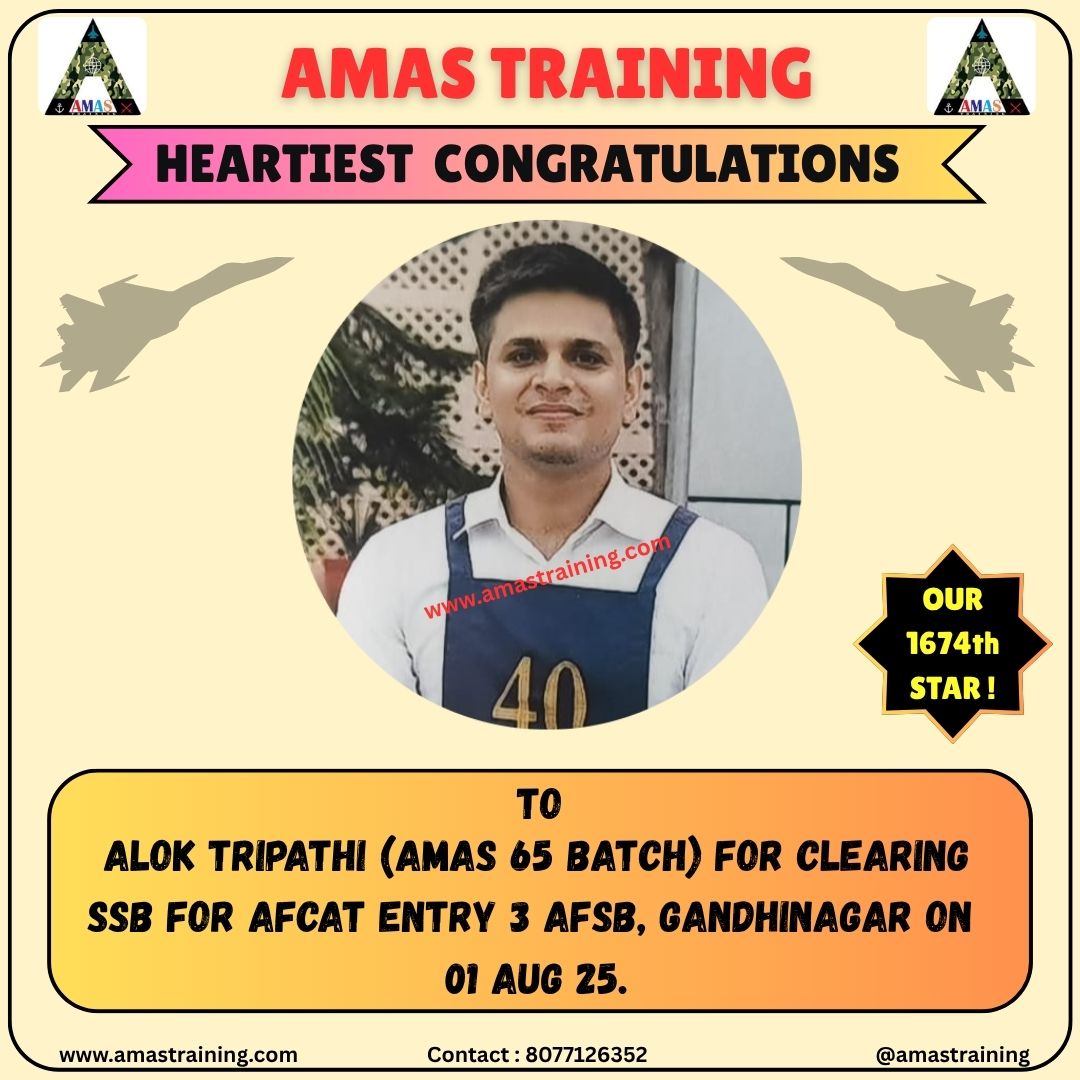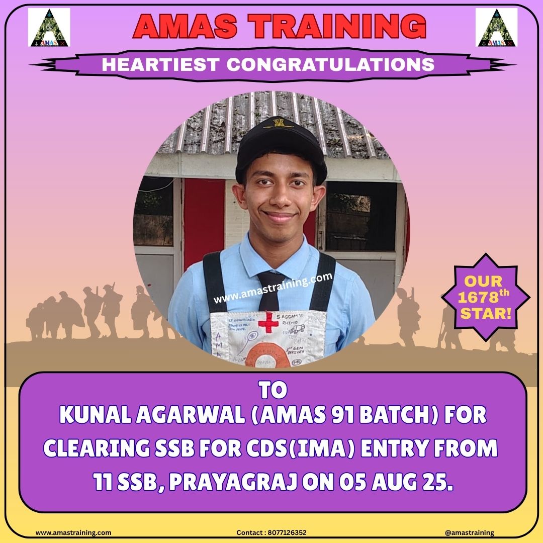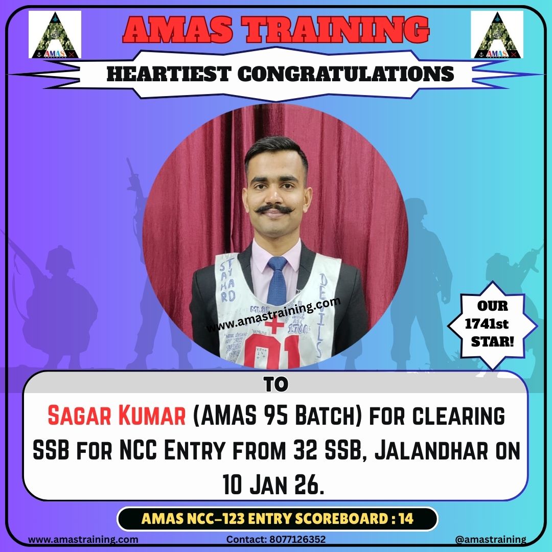 “Its really PROUD to be a part of such great ACADEMY...!! The classes are superb with all the required facilities and so COOPERATING faculty. You can even share any kind of problem with the main AUTHORITIES. All over the academv team in very INSPIRING and full of ENTHUSIASM..The most admiring part is that the tutors focus on CONCEPTUAL development..!! So I recommend students aspiring for SSB to join ”AMAS TRAINING, THE GURUKUL OF SSB" for enhancing your knowledge and to get best RESULTS..!!