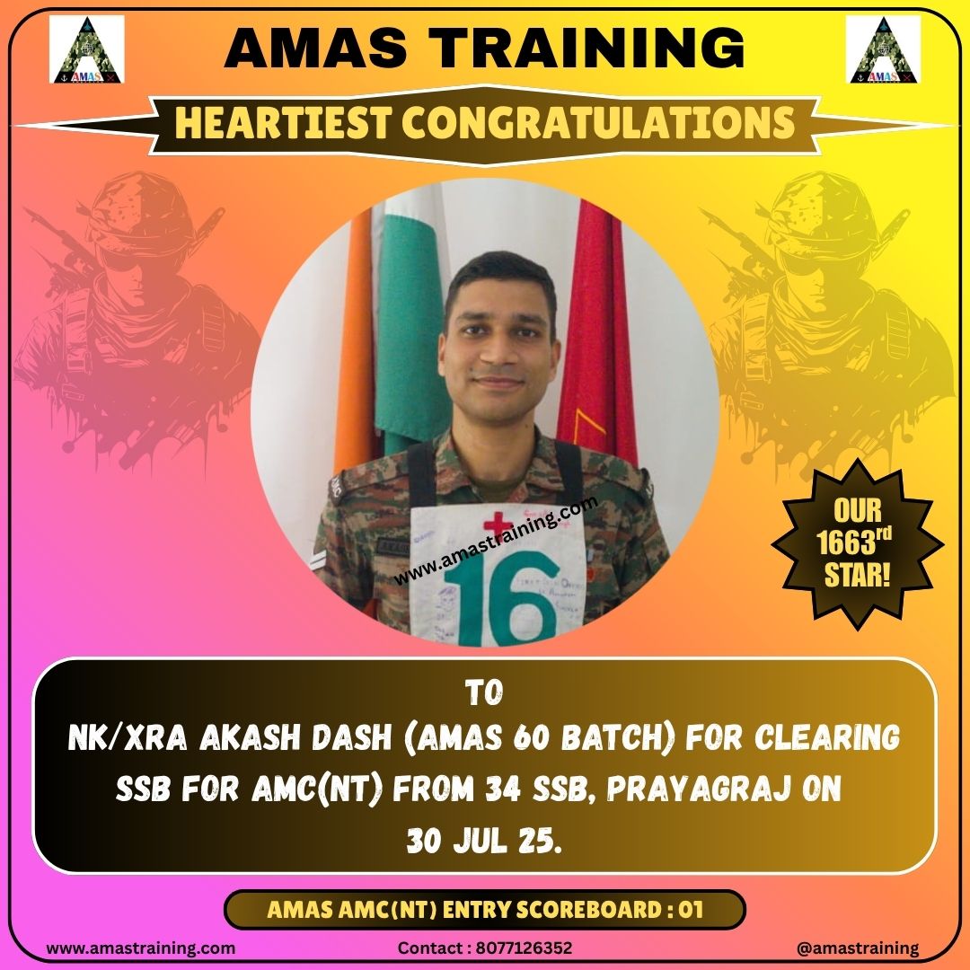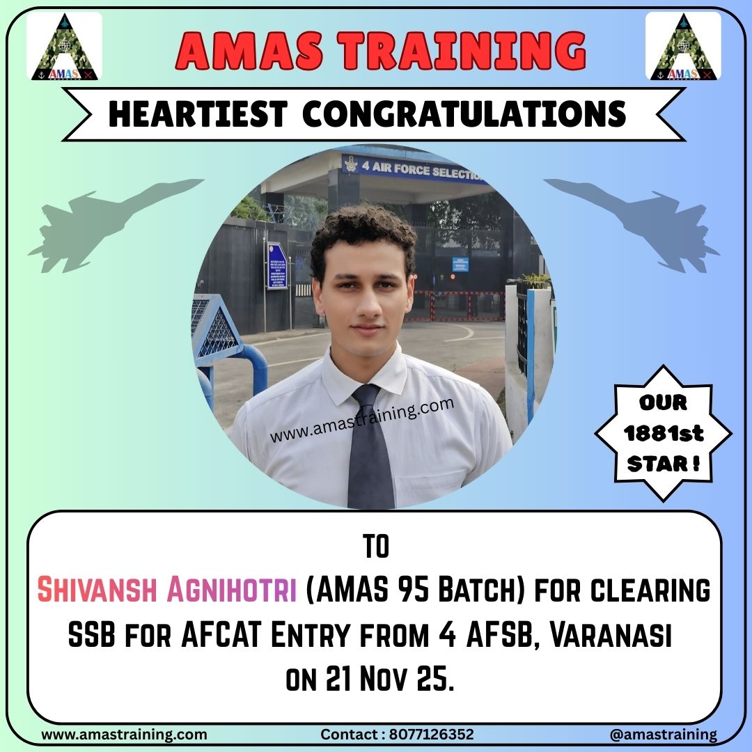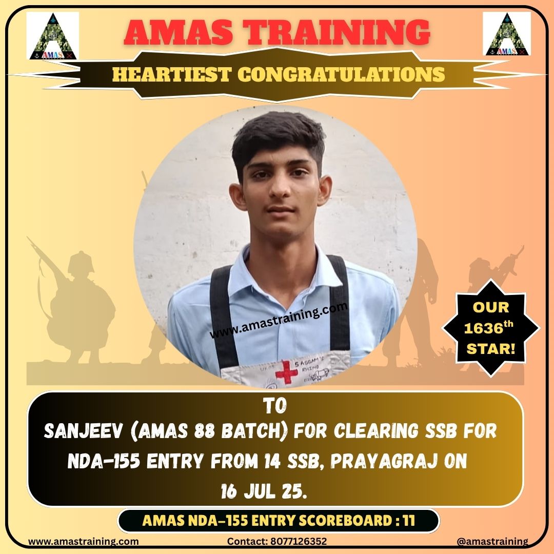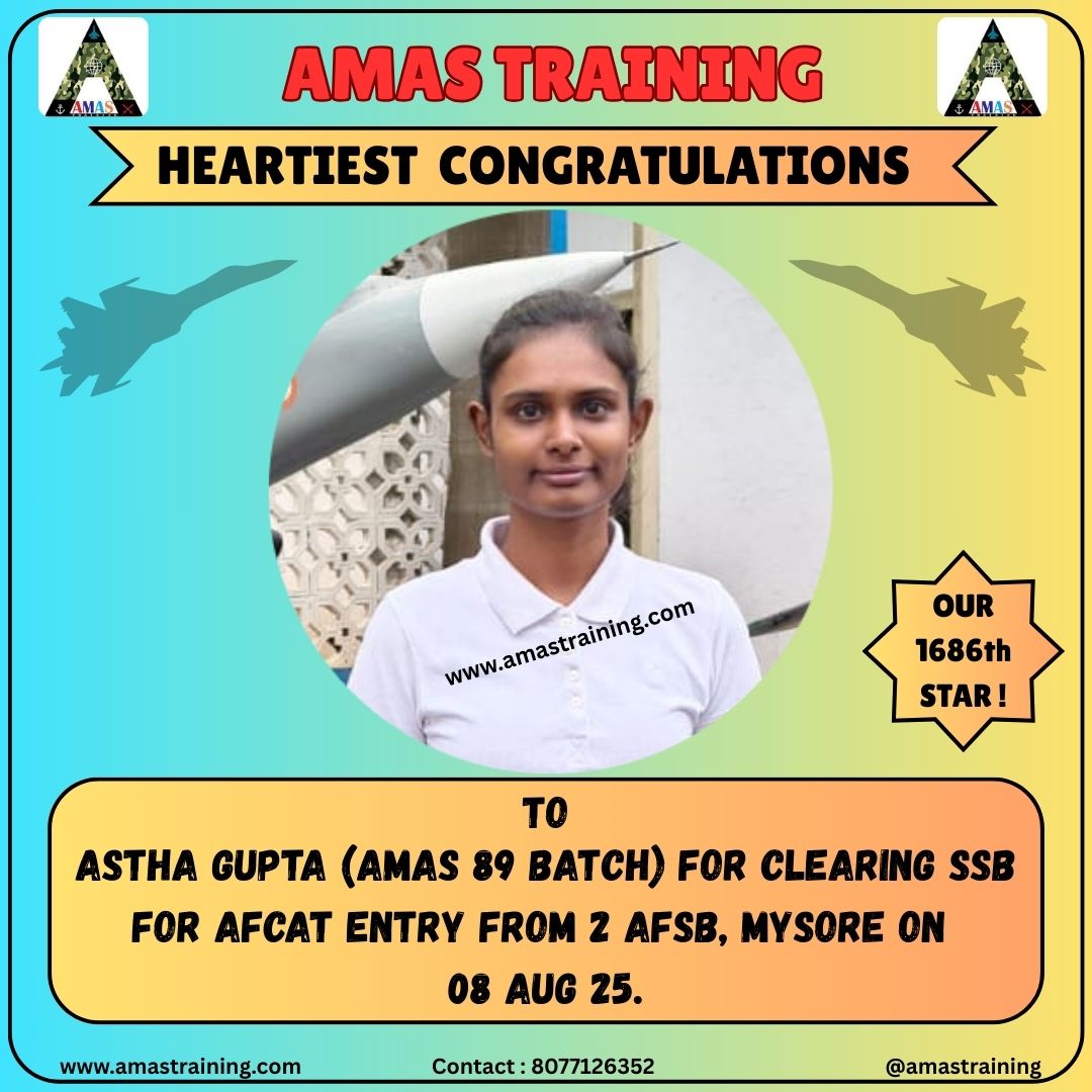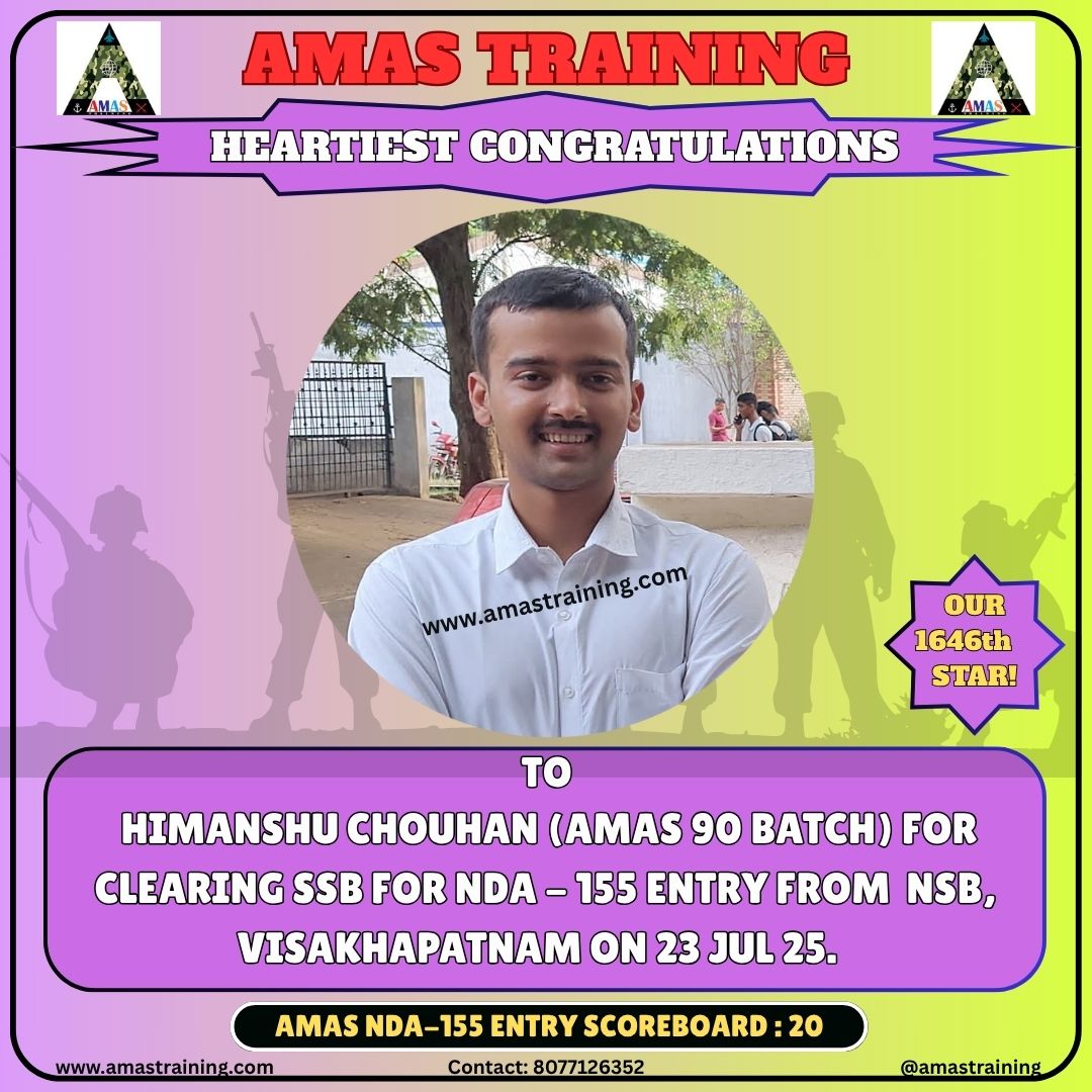 “Its really PROUD to be a part of such great ACADEMY...!! The classes are superb with all the required facilities and so COOPERATING faculty. You can even share any kind of problem with the main AUTHORITIES. All over the academv team in very INSPIRING and full of ENTHUSIASM..The most admiring part is that the tutors focus on CONCEPTUAL development..!! So I recommend students aspiring for SSB to join ”AMAS TRAINING, THE GURUKUL OF SSB" for enhancing your knowledge and to get best RESULTS..!!
