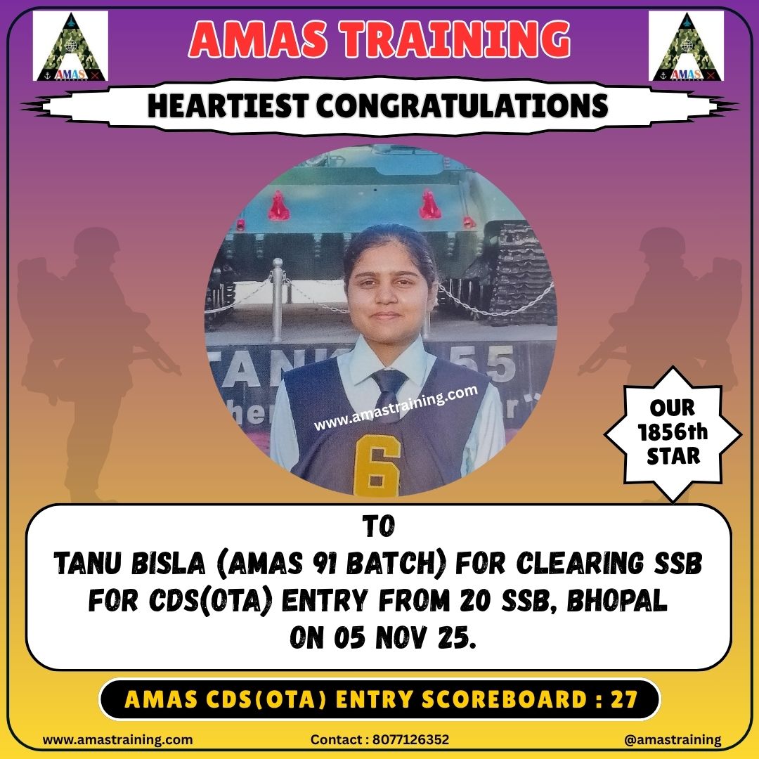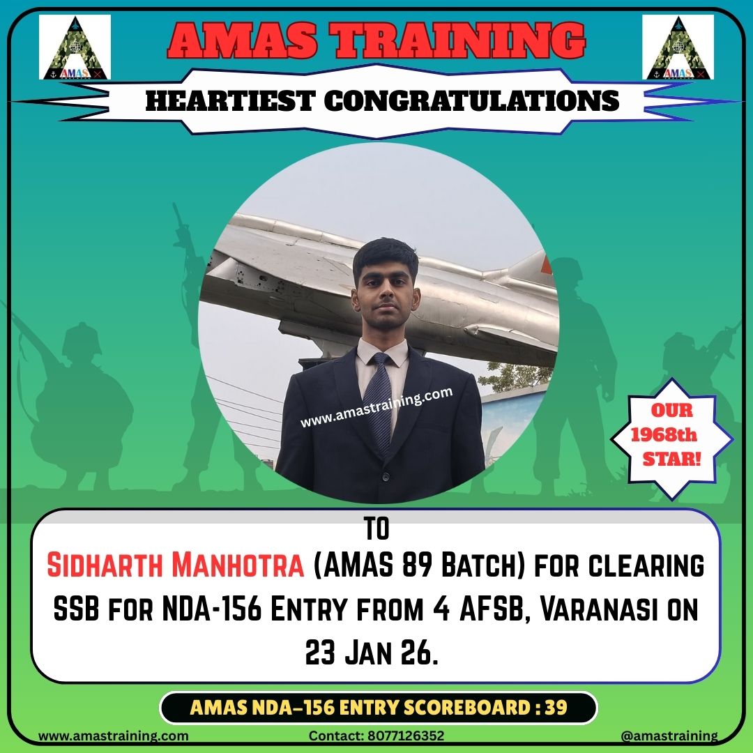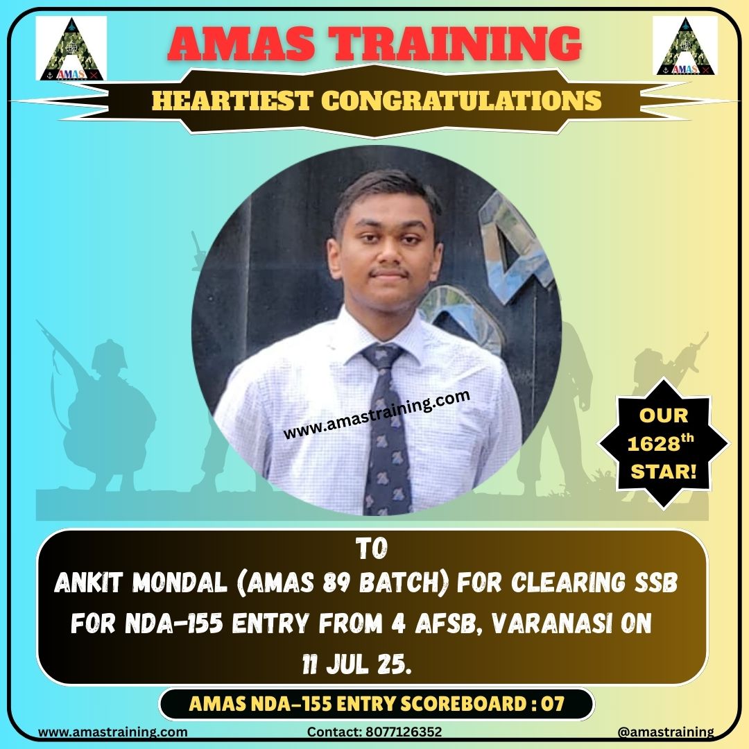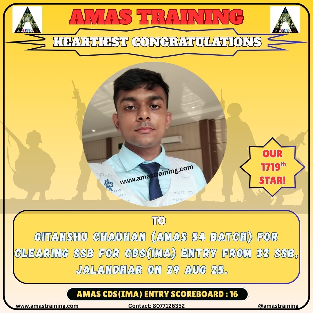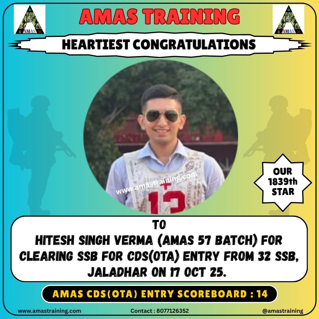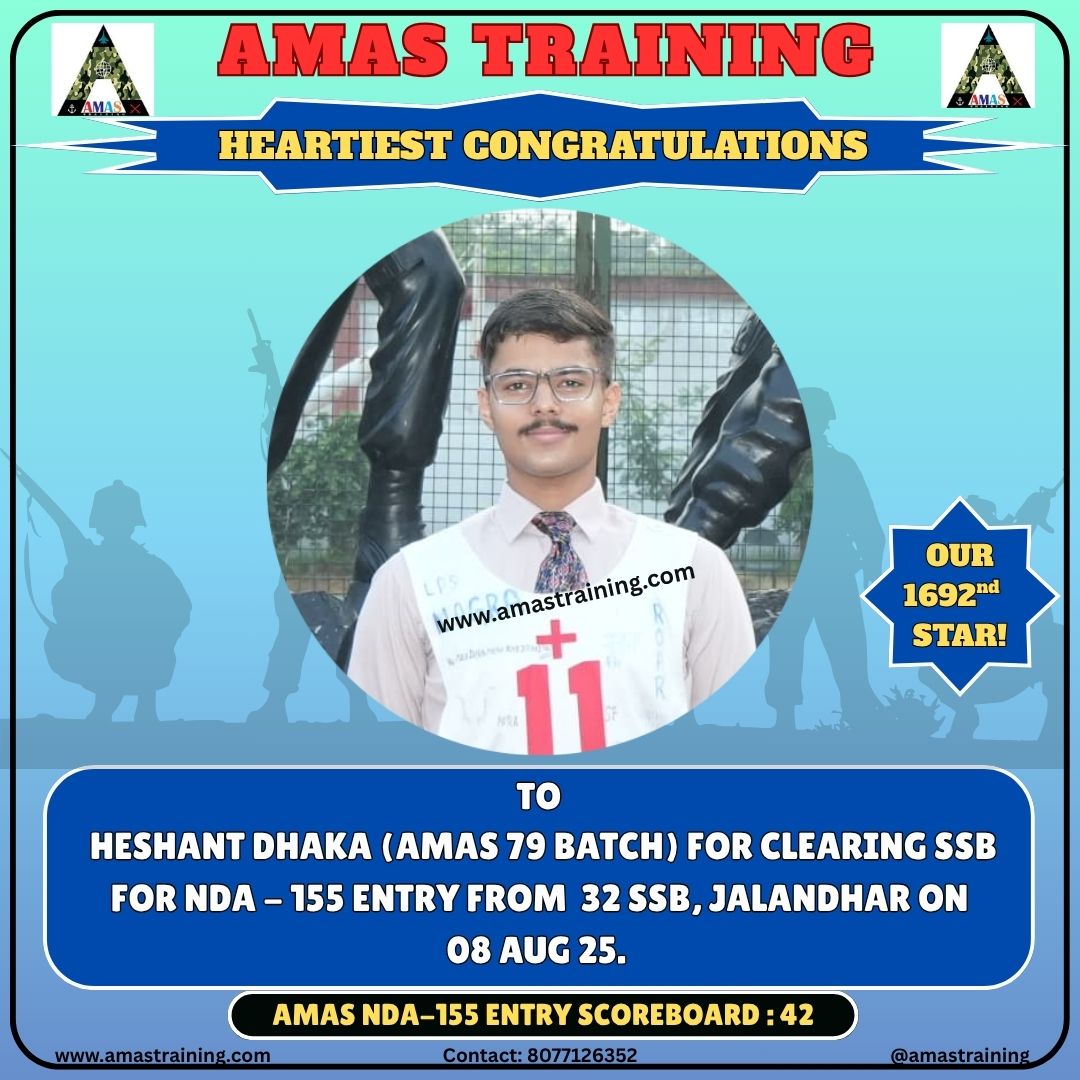 “Its really PROUD to be a part of such great ACADEMY...!! The classes are superb with all the required facilities and so COOPERATING faculty. You can even share any kind of problem with the main AUTHORITIES. All over the academv team in very INSPIRING and full of ENTHUSIASM..The most admiring part is that the tutors focus on CONCEPTUAL development..!! So I recommend students aspiring for SSB to join ”AMAS TRAINING, THE GURUKUL OF SSB" for enhancing your knowledge and to get best RESULTS..!!