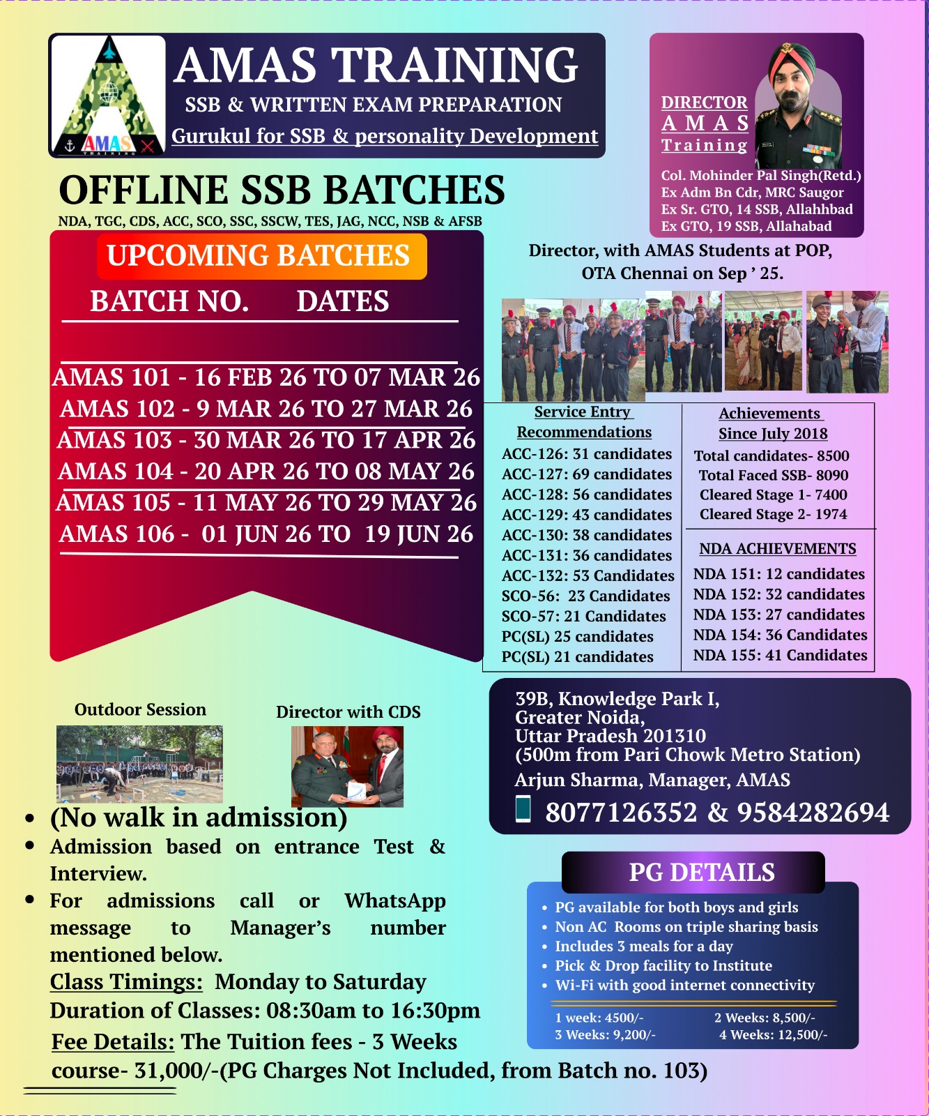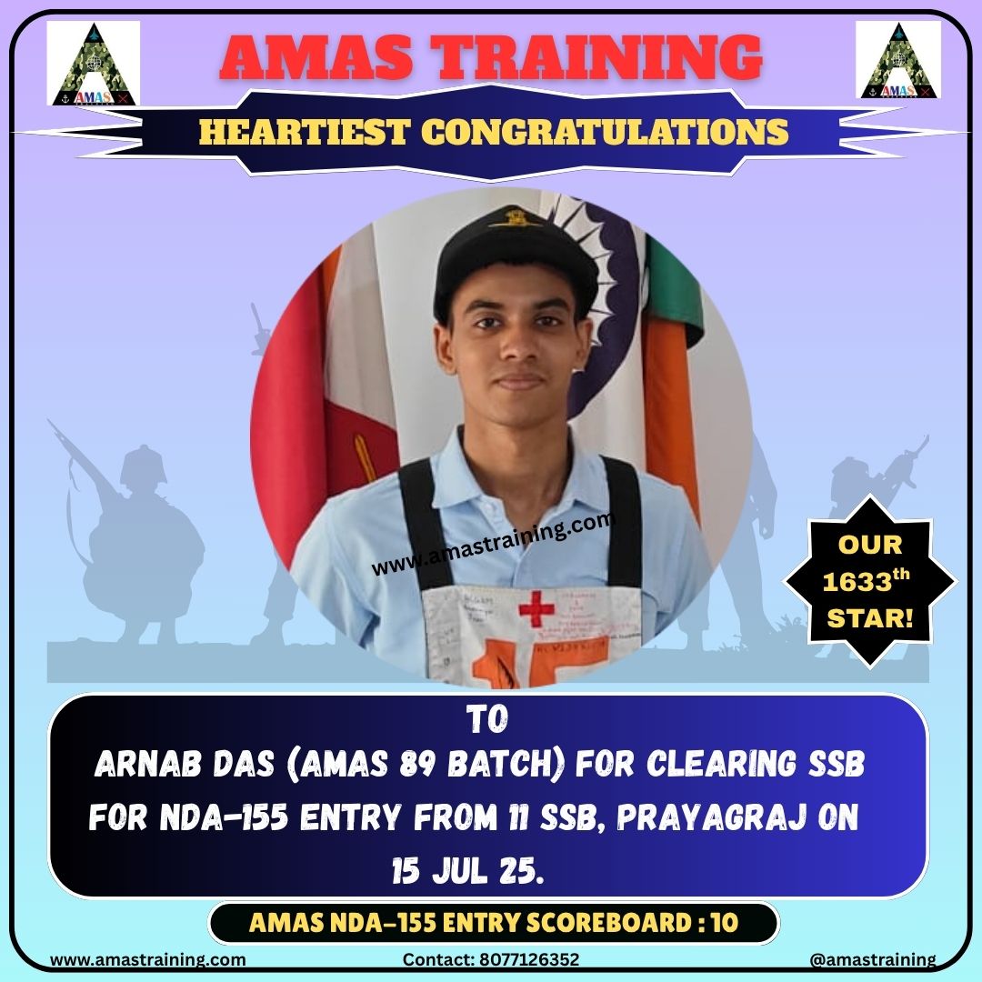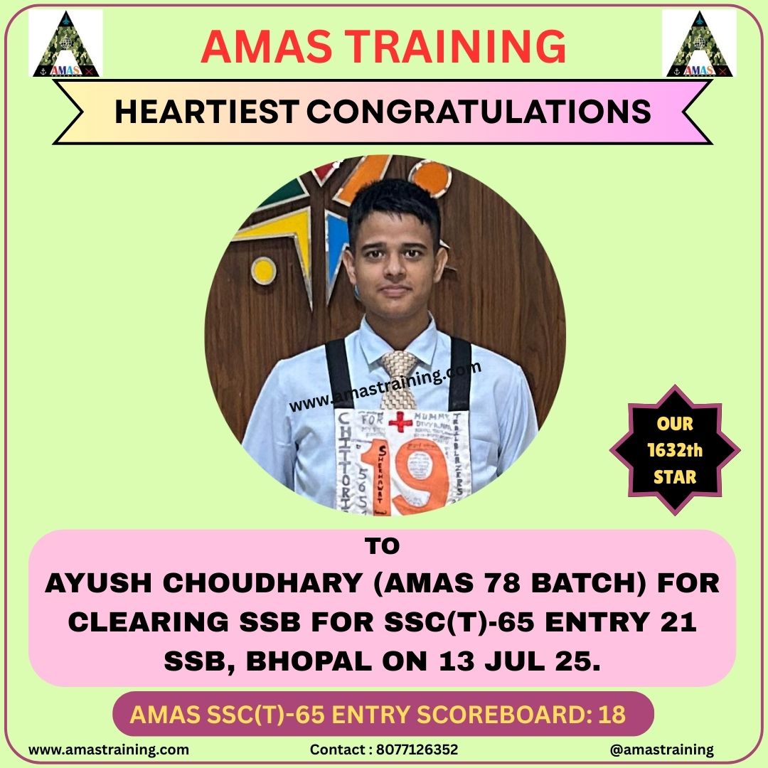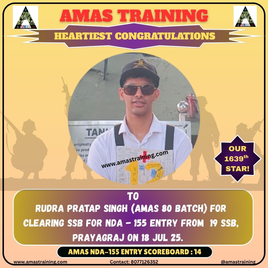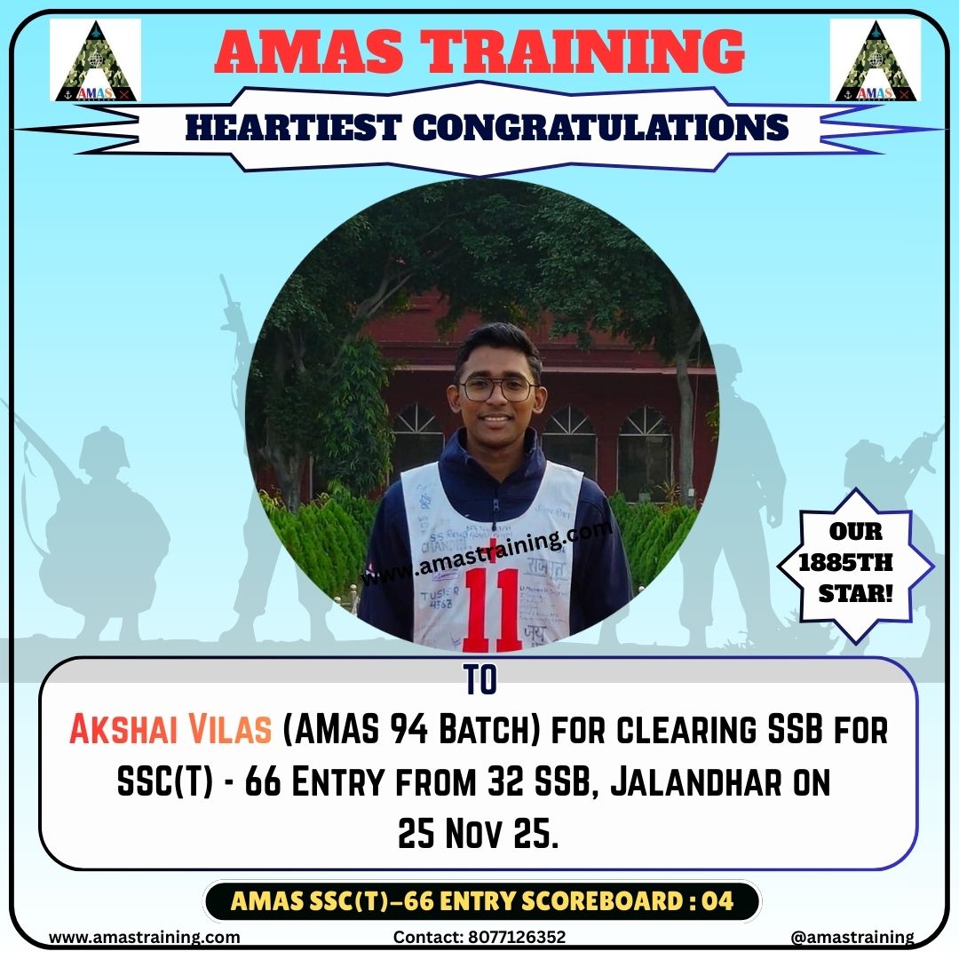“Its really PROUD to be a part of such great ACADEMY...!! The classes are superb with all the required facilities and so COOPERATING faculty. You can even share any kind of problem with the main AUTHORITIES. All over the academv team in very INSPIRING and full of ENTHUSIASM..The most admiring part is that the tutors focus on CONCEPTUAL development..!! So I recommend students aspiring for SSB to join ”AMAS TRAINING, THE GURUKUL OF SSB" for enhancing your knowledge and to get best RESULTS..!!