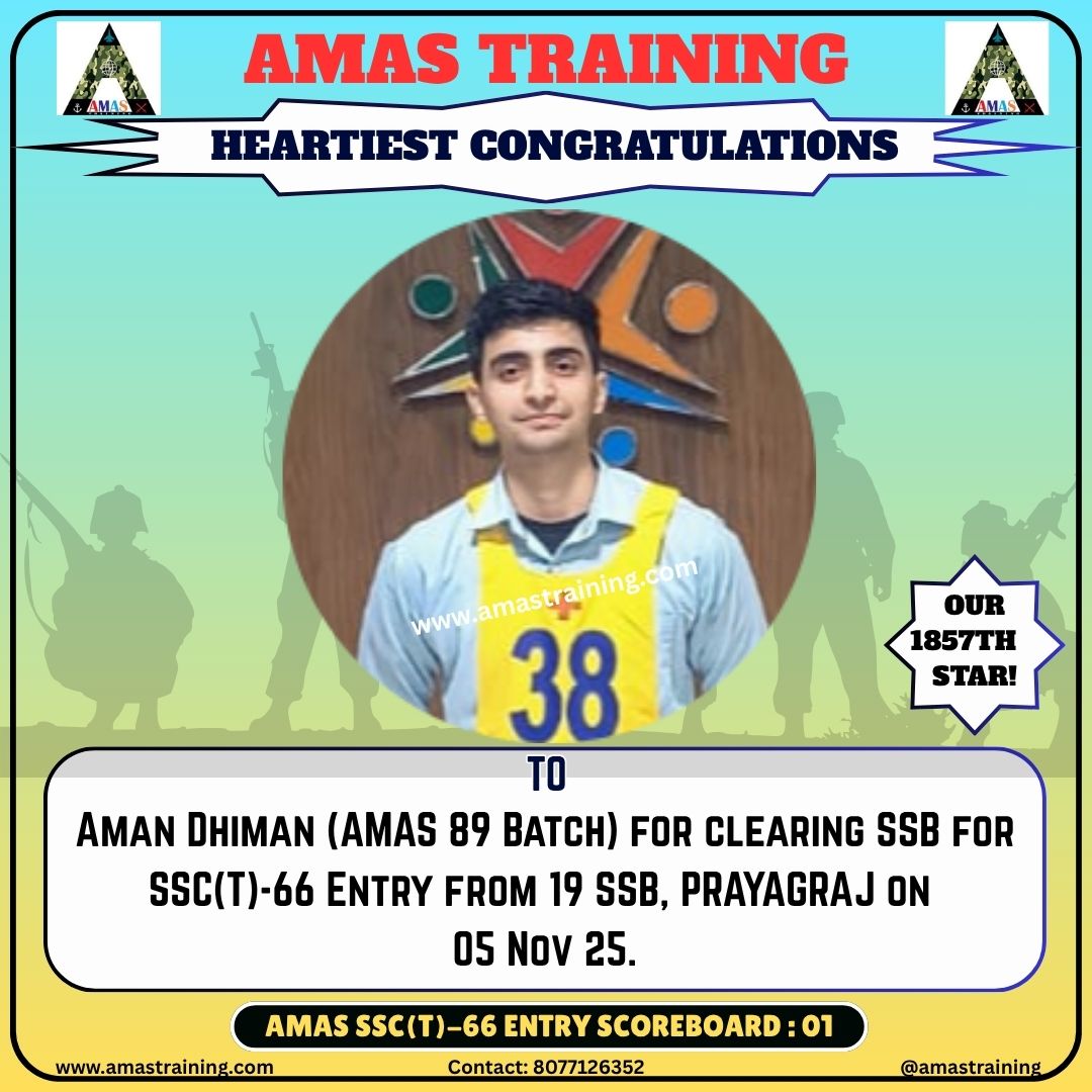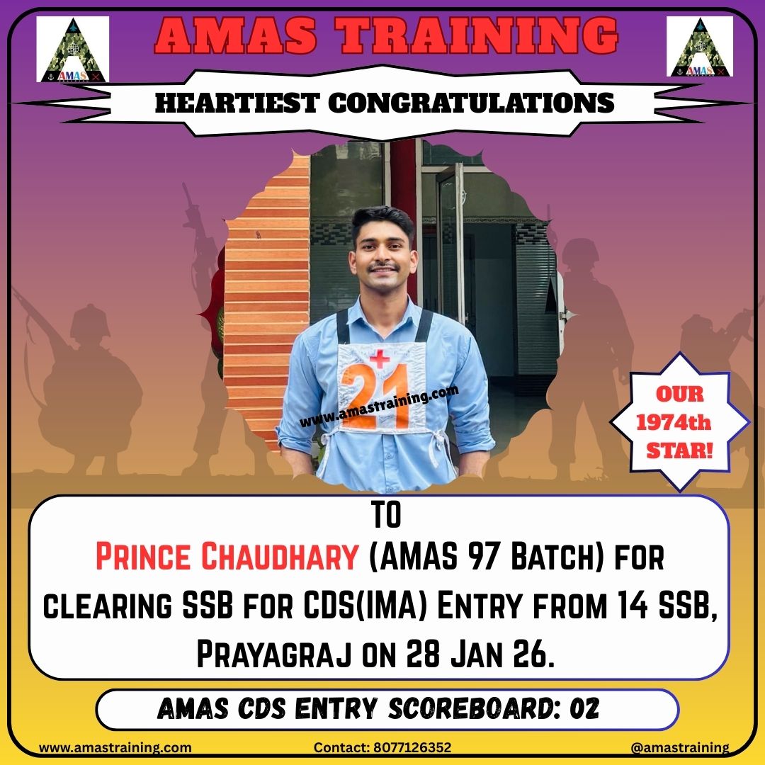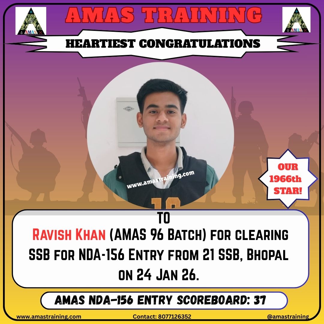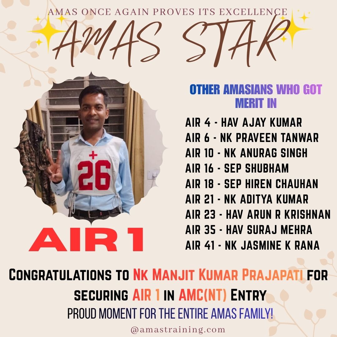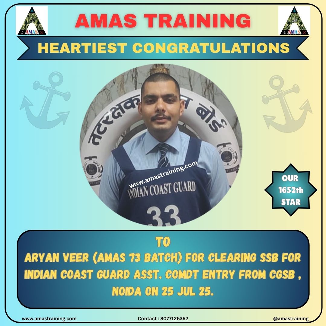 “Its really PROUD to be a part of such great ACADEMY...!! The classes are superb with all the required facilities and so COOPERATING faculty. You can even share any kind of problem with the main AUTHORITIES. All over the academv team in very INSPIRING and full of ENTHUSIASM..The most admiring part is that the tutors focus on CONCEPTUAL development..!! So I recommend students aspiring for SSB to join ”AMAS TRAINING, THE GURUKUL OF SSB" for enhancing your knowledge and to get best RESULTS..!!