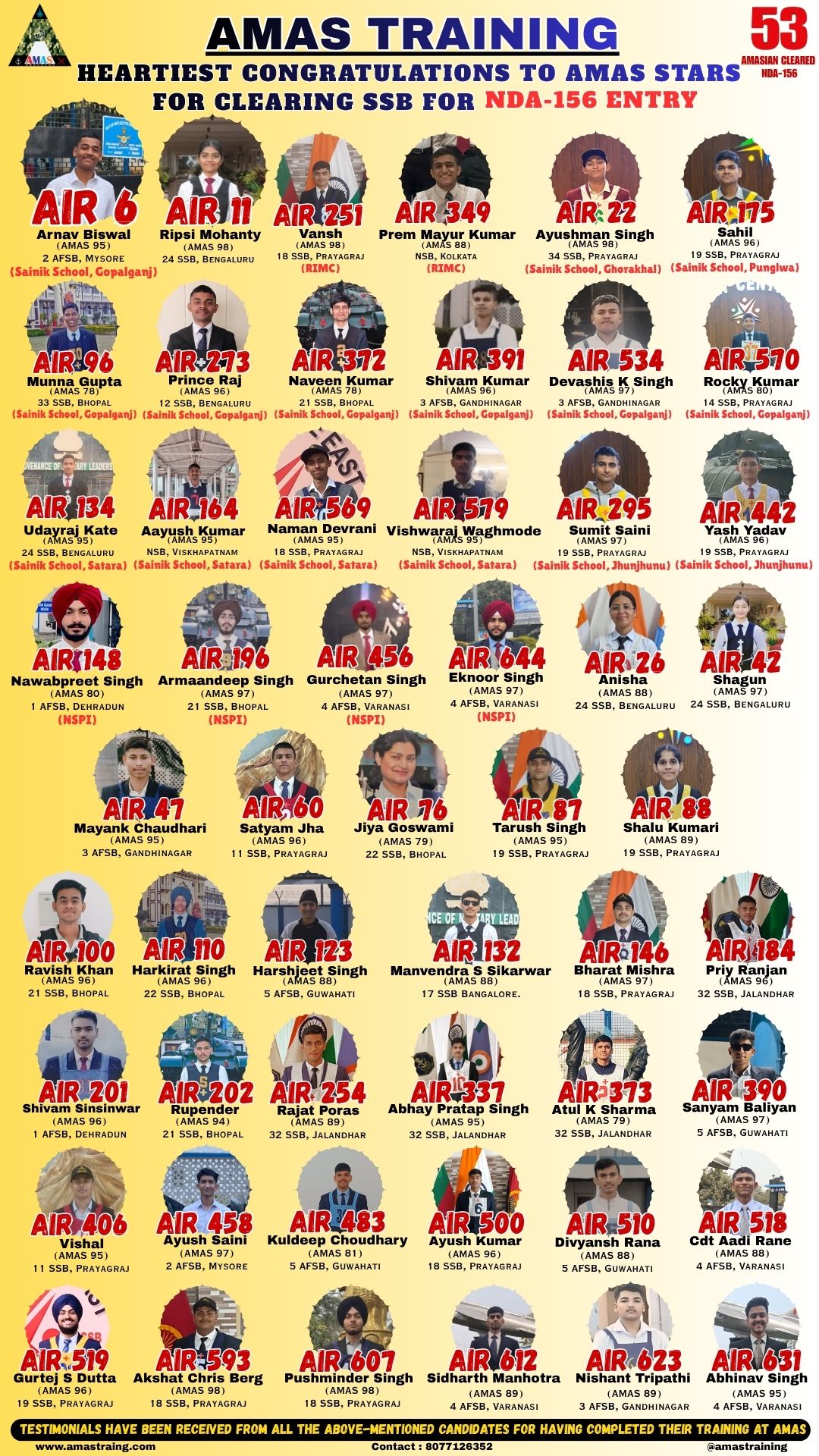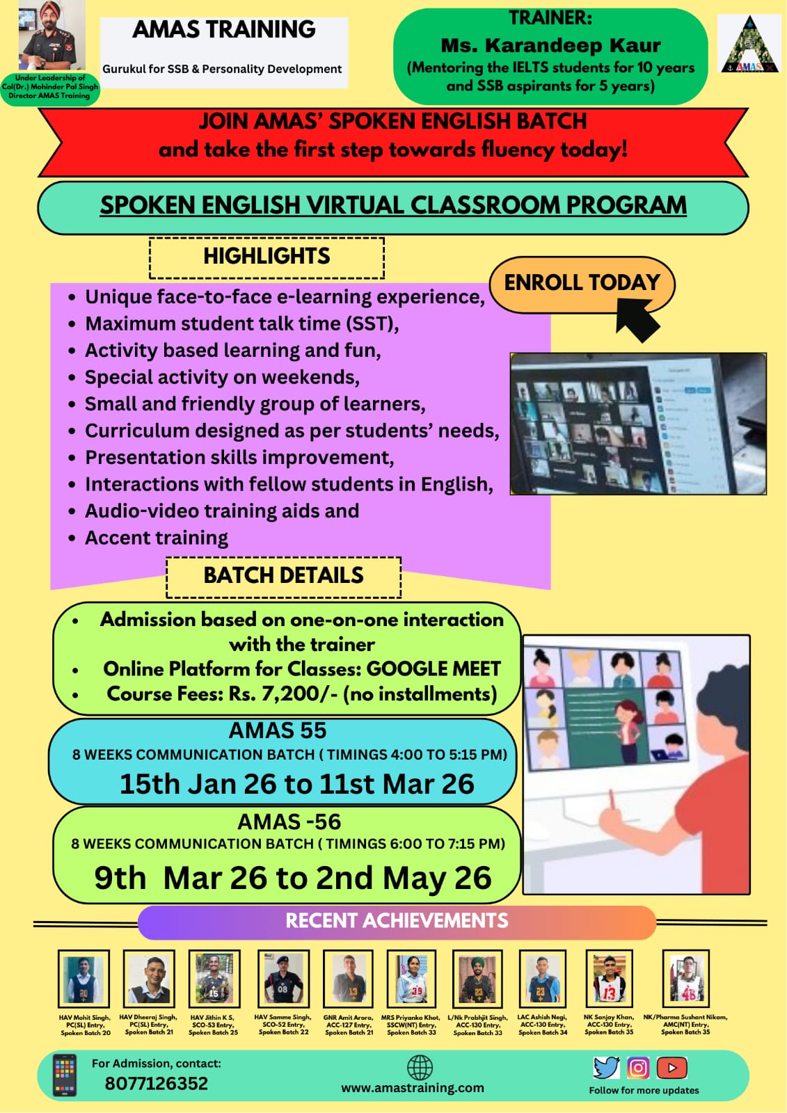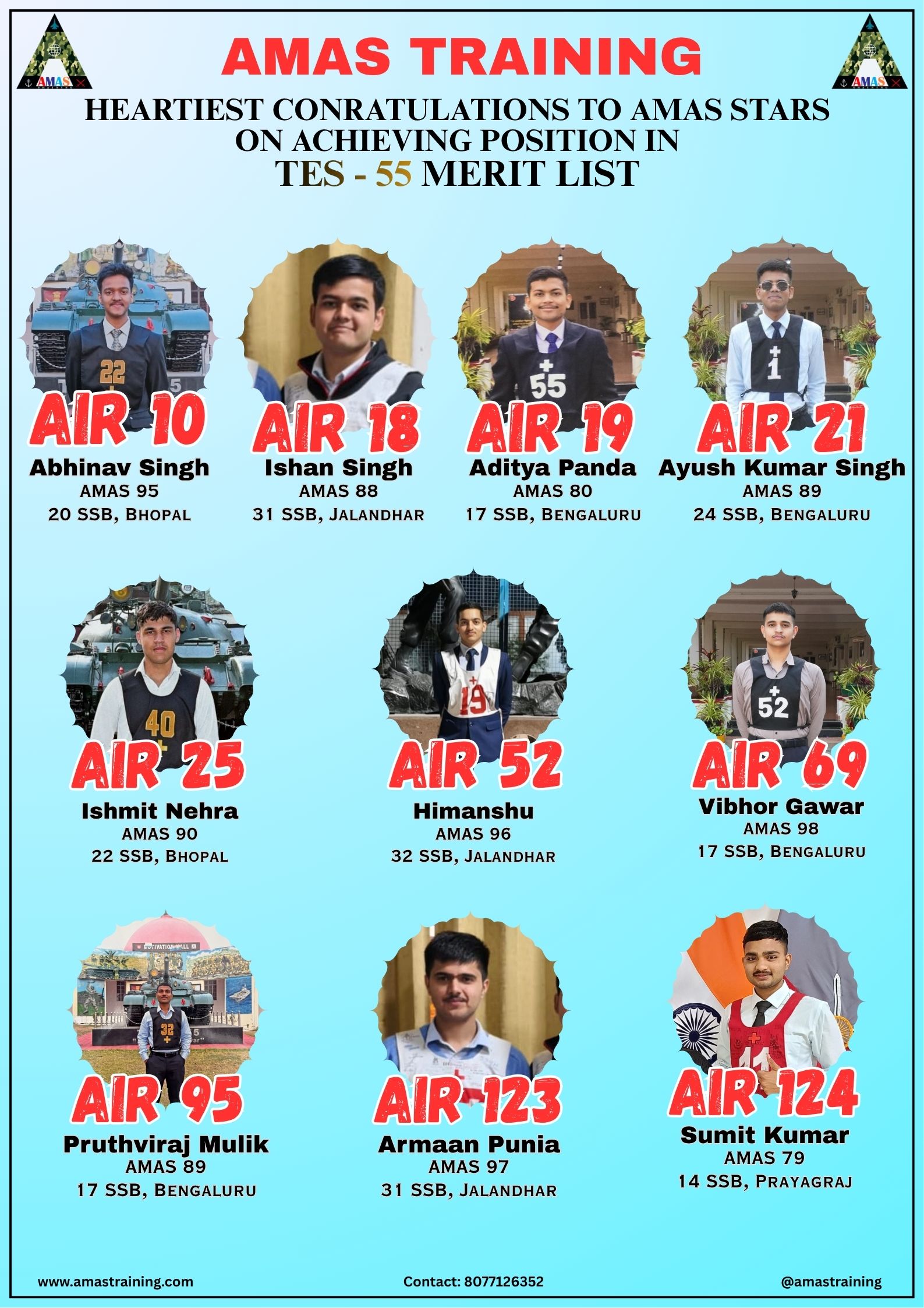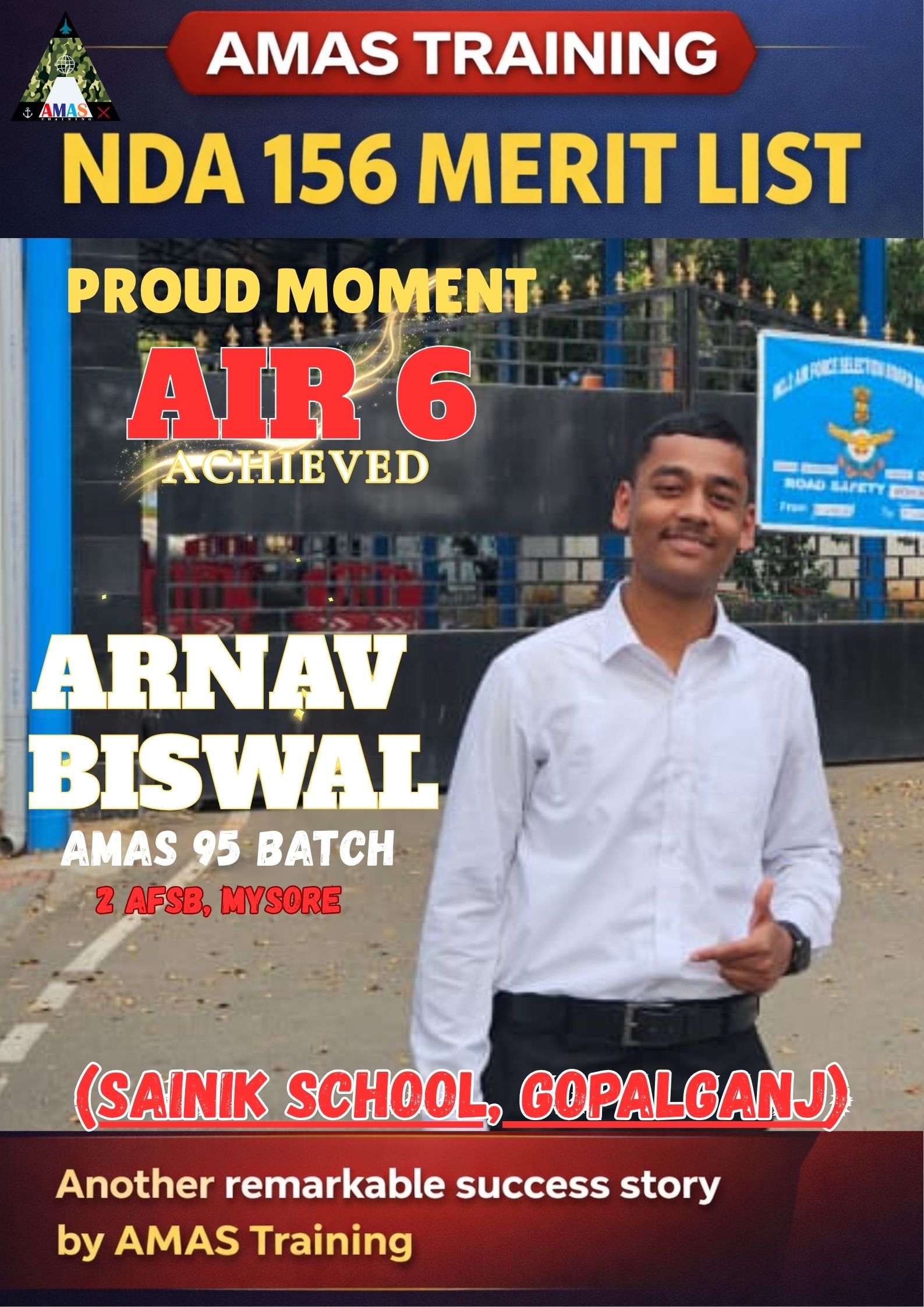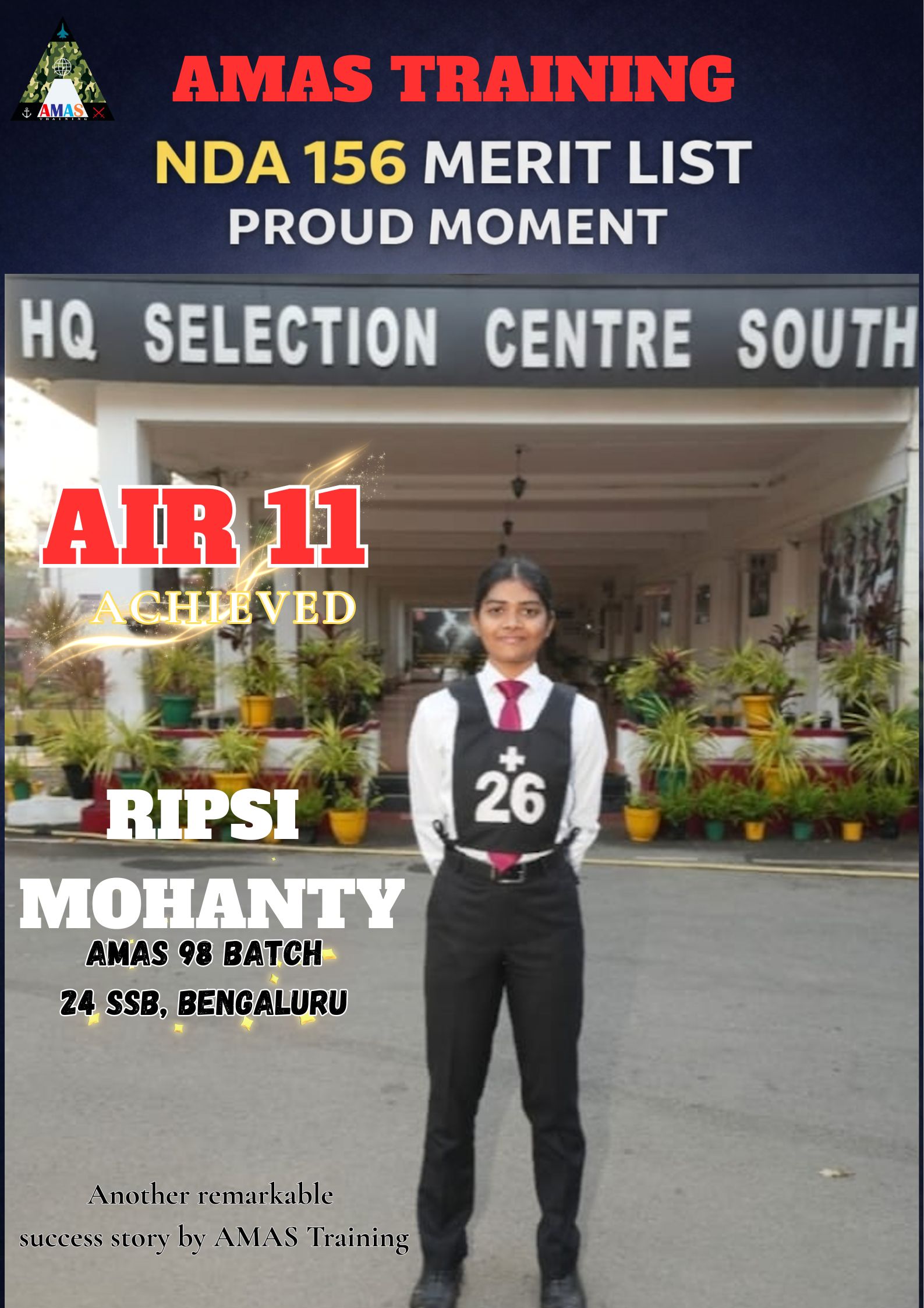 “Its really PROUD to be a part of such great ACADEMY...!! The classes are superb with all the required facilities and so COOPERATING faculty. You can even share any kind of problem with the main AUTHORITIES. All over the academv team in very INSPIRING and full of ENTHUSIASM..The most admiring part is that the tutors focus on CONCEPTUAL development..!! So I recommend students aspiring for SSB to join ”AMAS TRAINING, THE GURUKUL OF SSB" for enhancing your knowledge and to get best RESULTS..!!