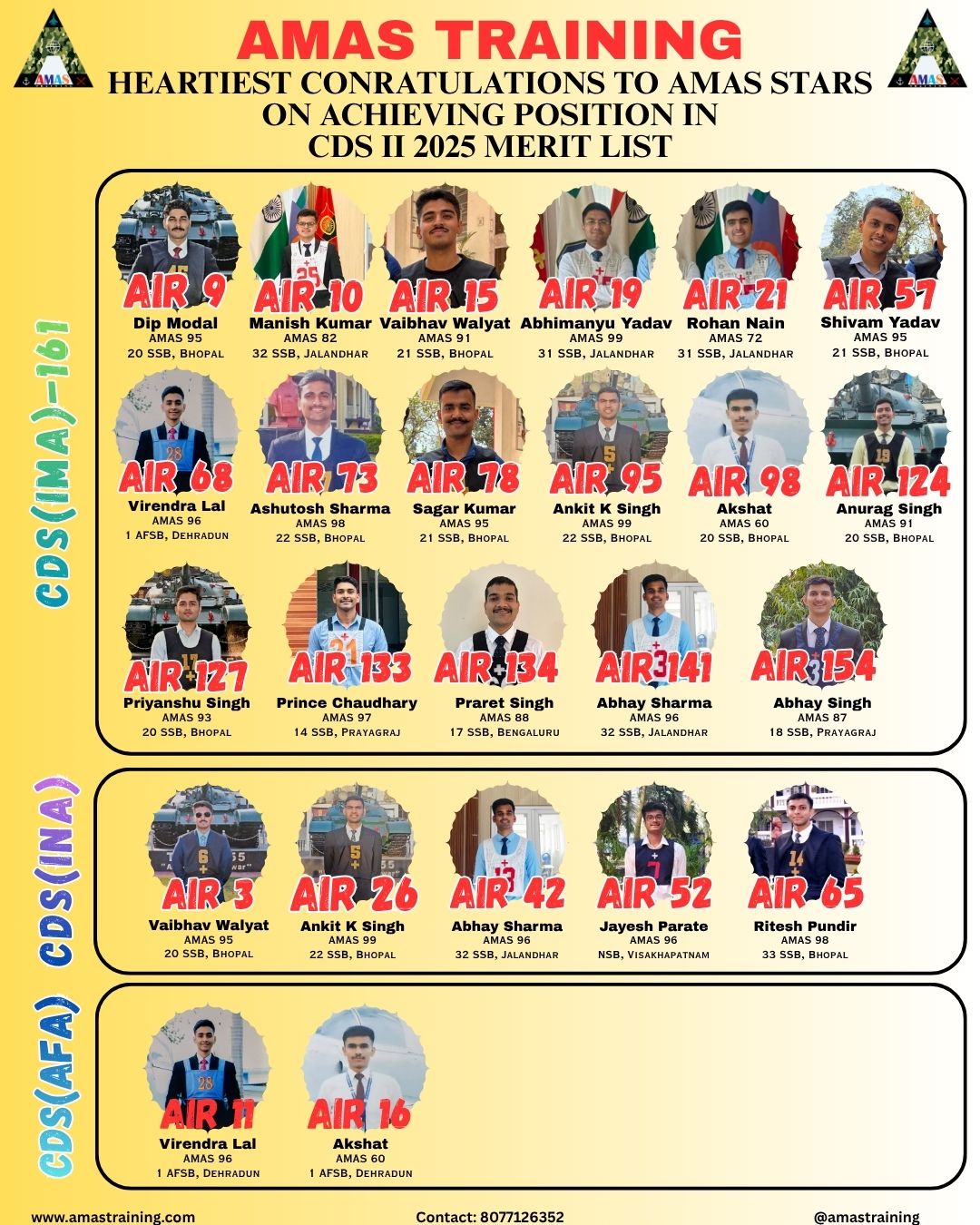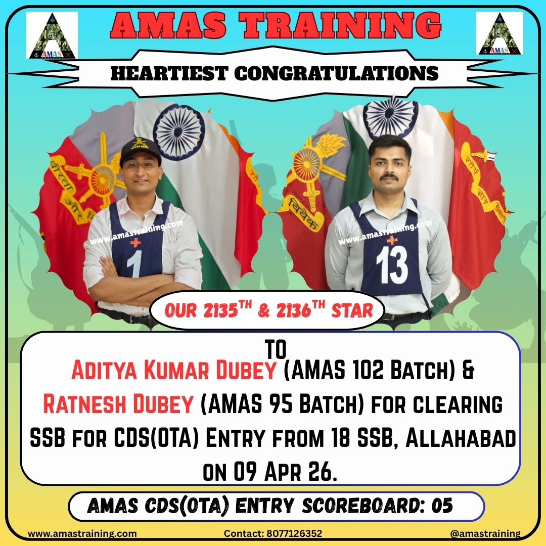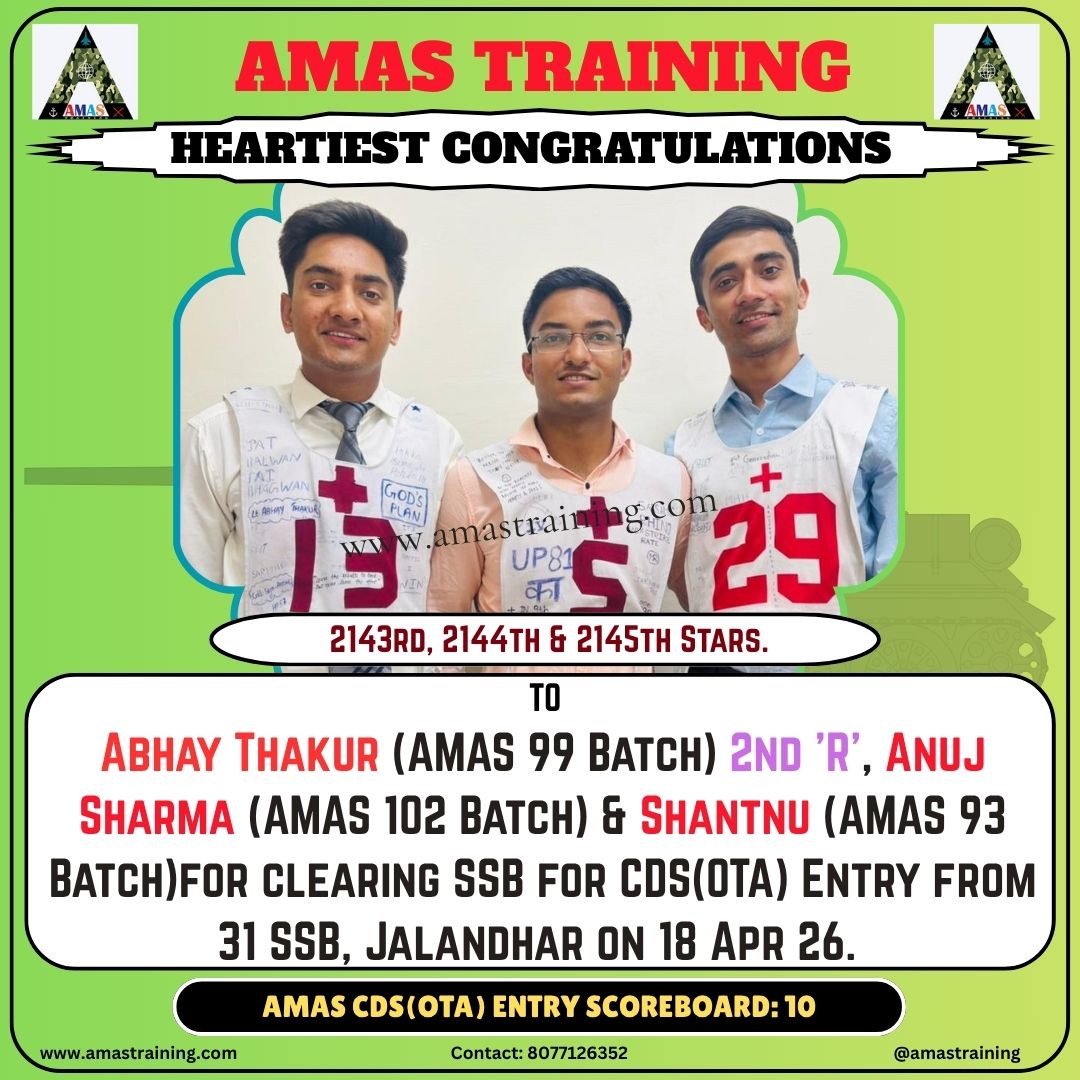 Heartiest Congratulations To: *****SAMBIT PATNAIK for getting recommended from 20 SSB, BHOPAL on 25 APR 2026 for CDS(OTA) Entry*****ANURAG SINGH for getting recommended from 20 SSB, BHOPAL on 25 APR 2026 for CDS(OTA) Entry*****JANNAT for getting recommended from 18 SSB, PRAYAGRAJ on 24 APR 2026 for CDS(OTA) Entry*****MAMTA KUMARI for getting recommended from 18 SSB, PRAYAGRAJ on 24 APR 2026 for CDS(OTA) Entry*****ANJALI CHAUHAN for getting recommended from 18 SSB, PRAYAGRAJ on 24 APR 2026 for CDS(OTA) Entry*****MANVENDRA SINGH SHAKTAWAT for getting recommended from 31 SSB, JALANDHAR on 23 APR 2026 for CDS(OTA) Entry*****HARIOM DWIVEDI for getting recommended from 11 SSB, PRAYAGRAJ on 22 APR 2026 for CDS(OTA) Entry*****ASHRANT KAUSHAL for getting recommended from 32 SSB, JALANDHAR on 15 APR 2026 for CDS(OTA) Entry*****AVR LOG(MAT) SAURAV SINGH for getting recommended from 33 SSB, BHOPAL on 22 APR 2026 for CW NAVY Entry*****JOHNA KILONG for getting recommended from 19 SSB, PRAYAGRAJ on 20 APR 2026 for CDS(OTA) Entry*****AYUSH PARIHAR for getting recommended from 32 SSB, JALANDHAR on 20 APR 2026 for CDS(OTA) Entry*****ANKIT SINGH for getting recommended from 20 SSB, BHOPAL on 20 APR 2026 for CDS(OTA) Entry*****ABHAY THAKUR for getting recommended from 31 SSB, JALANDHAR on 18 APR 2026 for CDS(OTA) Entry*****NEERAJ KUMAR for getting recommended from 31 SSB, JALANDHAR on 18 APR 2026 for CDS(OTA) Entry*****ANUJ SHARMA for getting recommended from 31 SSB, JALANDHAR on 18 APR 2026 for CDS(OTA) Entry*****SANTANU for getting recommended from 31 SSB, JALANDHAR on 18 APR 2026 for CDS(OTA) Entry*****DHANANJAY MOUDGIL for getting recommended from 1 AFSB, DEHRADUN on 17 APR 2026 for AFCAT Entry*****AVINASH KUMAR SINGH for getting recommended from 1 AFSB, DEHRADUN on 17 APR 2026 for AFCAT Entry*****LAC AMAN KUMAR RAWAT for getting recommended from 11 SSB, PRAYAGRAJ on 17 APR 2026 for CDS(OTA) Entry*****SOHAM KUMAR MISHRA for getting recommended from 33 SSB, BHOPAL on 12 APR 2026 for 10+2 NAVY TECH Entry*****ADITYA TIWARI for getting recommended from 5 AFSB, GUWAHATI on 10 APR 2026 for AFCAT Entry*****RATNESH DUBEY for getting recommended from 18 SSB, PRAYAGRAJ on 09 APR 2026 for CDS(OTA) Entry*****ADITYA KUMAR DUBEY for getting recommended from 18 SSB, PRAYAGRAJ on 09 APR 2026 for CDS(OTA) Entry*****VINEET KUMAR for getting recommended from 12 SSB, BANGALORE on 03 APR 2026 for 10+2 NAVY TECH Entry*****PREMJEET YADAV for getting recommended from 11 SSB, PRAYAGRAJ on 07 APR 2026 for CDS(OTA) Entry*****HAV SANDIP KUMAR for getting recommended from 32 SSB, JALANDHAR on 30 MAR 2026 for PC(SL) Entry*****HAV PA KAILASH CHAND for getting recommended from 20 SSB, BHOPAL on 05 APR 2026 for PC(SL) Entry*****NB SUB VENKATA RAMANA for getting recommended from 20 SSB, BHOPAL on 05 APR 2026 for PC(SL) Entry*****HAV SHEKAR SHARMA for getting recommended from 20 SSB, BHOPAL on 05 APR 2026 for PC(SL) Entry*****SUB SAVA VENKATA RAMAIAH for getting recommended from 20 SSB, BHOPAL on 05 APR 2026 for PC(SL) Entry*****GURTAJ SINGH DUTTA for getting recommended from NSB, KOLKATA on 04 APR 2026 for 10+2 NAVY TECH Entry*****ISHAN KASYAP for getting recommended from 12 SSB, BANGALORE on 03 APR 2026 for 10+2 NAVY TECH Entry*****NB SUB SHREEDATTA B PAI for getting recommended from 22 SSB, BHOPALon 04 APR 2026 for PC(SL) Entry*****NB SUB GAUTAM SHARMA for getting recommended from 22 SSB, BHOPALon 04 APR 2026 for PC(SL) Entry*****ADITYA SATHE for getting recommended from 2 AFSB, MYSORE on 03 APR 2026 for NCC(FLYING) Entry*****KHUSHI for getting recommended from 1 AFSB, DEHRADUN on 03 APR 2026 for NCC(AFA) Entry*****PARTH RAINA for getting recommended from 14 SSB, PRAYAGRAJ on 03 APR 2026 for CDS(OTA) Entry*****LNK ANIL YADAV for getting recommended from 21 SSB, BHOPAL on 03 APR 2026 for PC(SL) Entry*****UJJWAL SIROHI for getting recommended from CGSB, NOIDA on 02 APR 2026 for ICG(AC) Entry*****PRATIK TIPUGADE for getting recommended from 11 SSB, PRAYAGRAJ on 02 APR 2026 for CDS(OTA) Entry*****NB SUB(TIR) AMAR SARDAR for getting recommended from 17 SSB, BANGALORE on 01 APR 2026 for PC(SL) Entry*****HIMANSHU for getting recommended from 12 SSB, BANGALORE on 29 MAR 2026 for 10+2 NAVY TECH Entry*****HAV GAURAV KUMAR SHARMA for getting recommended from 31 SSB, JALANDHAR on 30 MAR 2026 for PC(SL) Entry*****HAV SANDEEP KUMAR for getting recommended from 31 SSB, JALANDHAR on 30 MAR 2026 for PC(SL) Entry*****HAV ASHWANI KUMAR for getting recommended from 31 SSB, JALANDHAR on 30 MAR 2026 for PC(SL) Entry*****MANISH JANMEDA for getting recommended from 4 AFSB, VARANASI on 27 MAR 2026 for AFCAT Entry*****HAV T SHARAT KUMAR for getting recommended from 20SSB, BHOPAL on 27 MAR 2026 for PC(SL) Entry*****LNK ROHIT GARG for getting recommended from 17 SSB, BANGALORE on 28 MAR 2026 for SCO-58 Entry*****NK ALEX ED for getting recommended from 32 SSB, JALANDHAR on 28 MAR 2026 for PC(SL) Entry*****HAV VISHAL for getting recommended from 24 SSB, BENGALORE on 23 MAR 2026 for SCO-58 Entry*****SHUBHAM SINGH for getting recommended from 1 AFSB, DEHRADUN on 27 MAR 2026 for AFCAT Entry*****AYUSH PARIHAR for getting recommended from 1 AFSB, DEHRADUN on 27 MAR 2026 for AFCAT Entry*****VAIBHAV WALYAT for getting recommended from 1 AFSB, DEHRADUN on 27 MAR 2026 for AFCAT Entry*****SHUBHAM SINGH for getting recommended from 1 AFSB, DEHRADUN on 27 MAR 2026 for AFCAT Entry*****HAV K S JAYAKRISHNAN for getting recommended from 22 SSB, BHOPAL on 27 MAR 2026 for PC(SL) Entry*****NK ROHIT for getting recommended from 22 SSB, BHOPAL on 27 MAR 2026 for PC(SL) Entry*****HAV SUNIL PARMAR for getting recommended from 22 SSB, BHOPAL on 27 MAR 2026 for PC(SL) Entry*****HAV ABHISHEK PRADHAN for getting recommended from 32 SSB, JALANDHAR on 26 MAR 2026 for PC(SL) Entry*****HAV SHIJIN KRISHNA N for getting recommended from 32 SSB, BHOPAL on 26 MAR 2026 for PC(SL) Entry*****HAV DIGVIJAY for getting recommended from 32 SSB, JALANDHAR on 22 MAR 2026 for SCO-58 Entry*****NK SUMIT KUMAR 