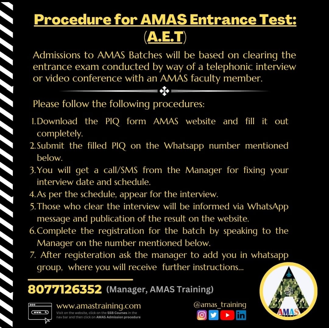 AMAS SSB ENTRANCE TEST RESULT - 2026